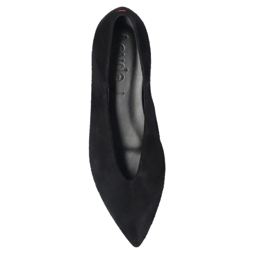 Aeyde Moa Ballerina – en raffineret, minimalistisk ballerina, der kombinerer en spids silhuet med blødt ruskindslæder til hverdagsbrug. Designet til en elegant, forlængende profil og komfortabel, lav profil support. Nøgleattributter: Sort | Ko ruskindslæder | Slip-on | Flad sål | Spids tå | Høj vrist | Definerede syninger | Minimalistisk præget indersål logo | Dimensioner og pasform: Sålhøjde: 1 cm | Passer normalt i størrelsen | Sammensætning og pleje: Yderside: 100% Ko ruskindslæder | Foring: 100% Krydsningslammelæder | Ydersål: 90% Læder, 10% Gummi