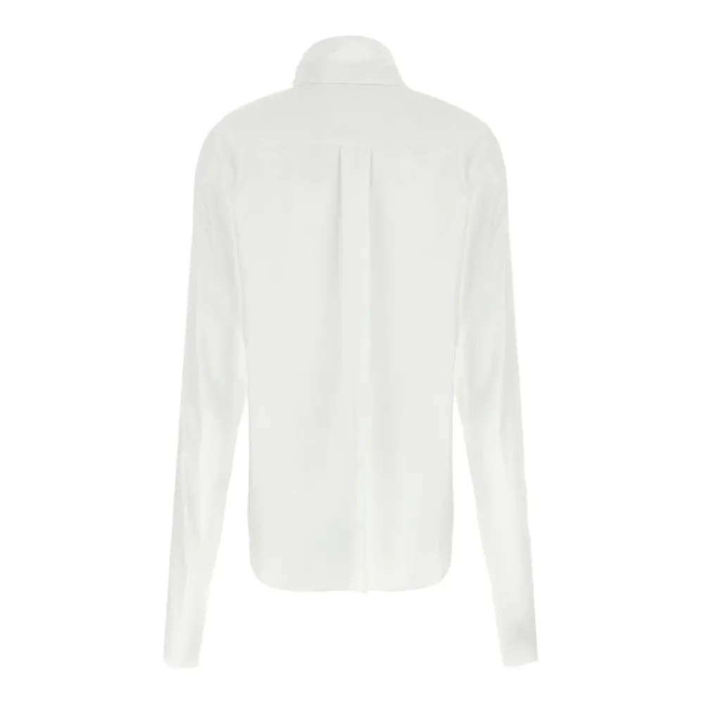 Alberta Ferretti Lavallière Collar Shirt er en hvid poplinskjorte i bomuld, der fremhæver en lavallière-krave for et romantisk, retro-inspireret look. Knaplukningen og de lange ærmer skaber en elegant og alsidig beklædningsgenstand til formelle lejligheder eller et løftet hverdagslook. Vigtigste egenskaber: Hvid | Bomuldspoplin | Knaplukning | Lange ærmer | Lavallière-krave | Retro-inspireret halsudskæring | Elegant finish | Sammensætning og pleje: Bomuldspoplin
