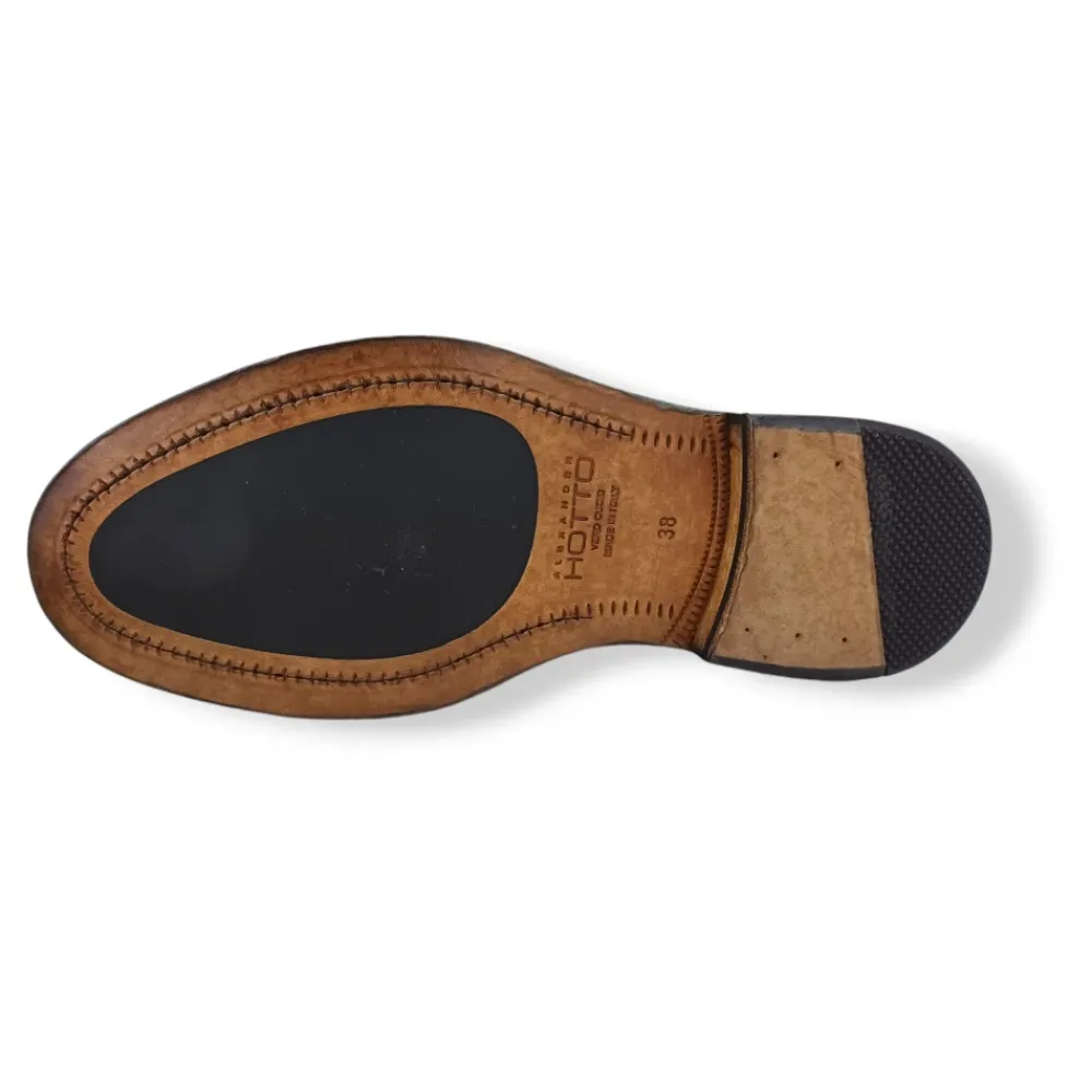 Oplev den tidløse elegance ved den Klassiske Læder Loafer Sko fra Alexander Hotto, perfekt til både formelle og afslappede lejligheder. Produkt detaljer: T. Di Moro | Brun | Læder | Snørelukning | Klassisk loafer design | Dimensioner og pasform: Normal pasform | Sammensætning og pleje: 100% Læder | Aftørres med en fugtig klud
