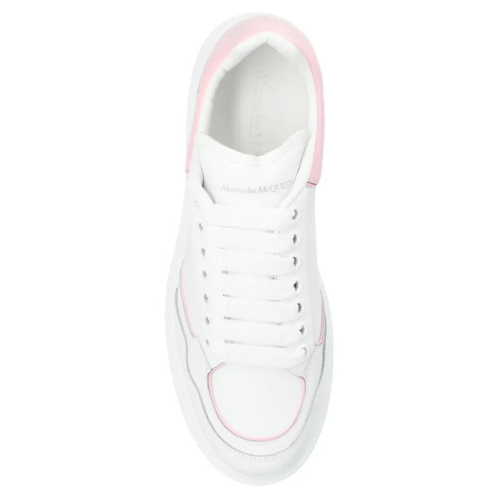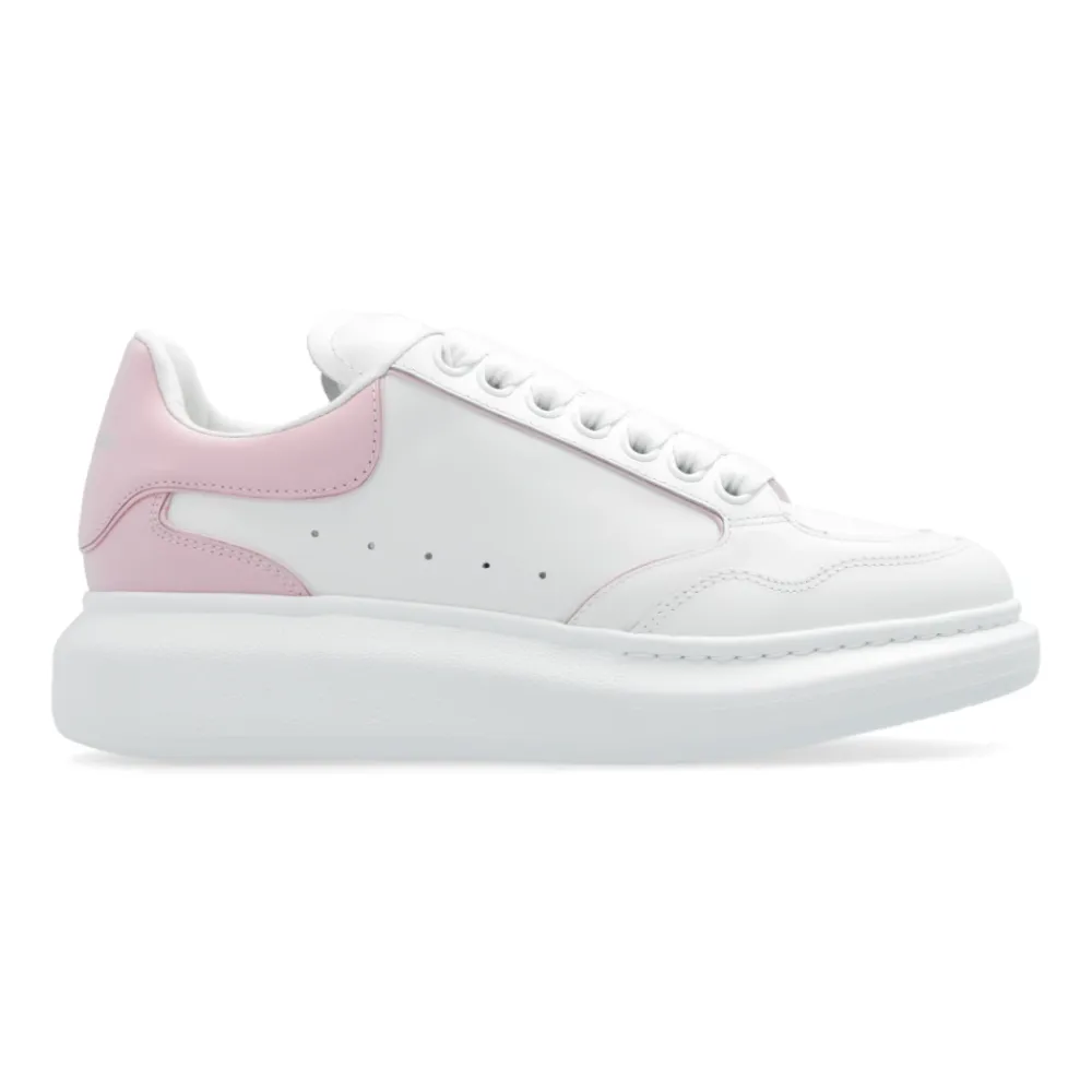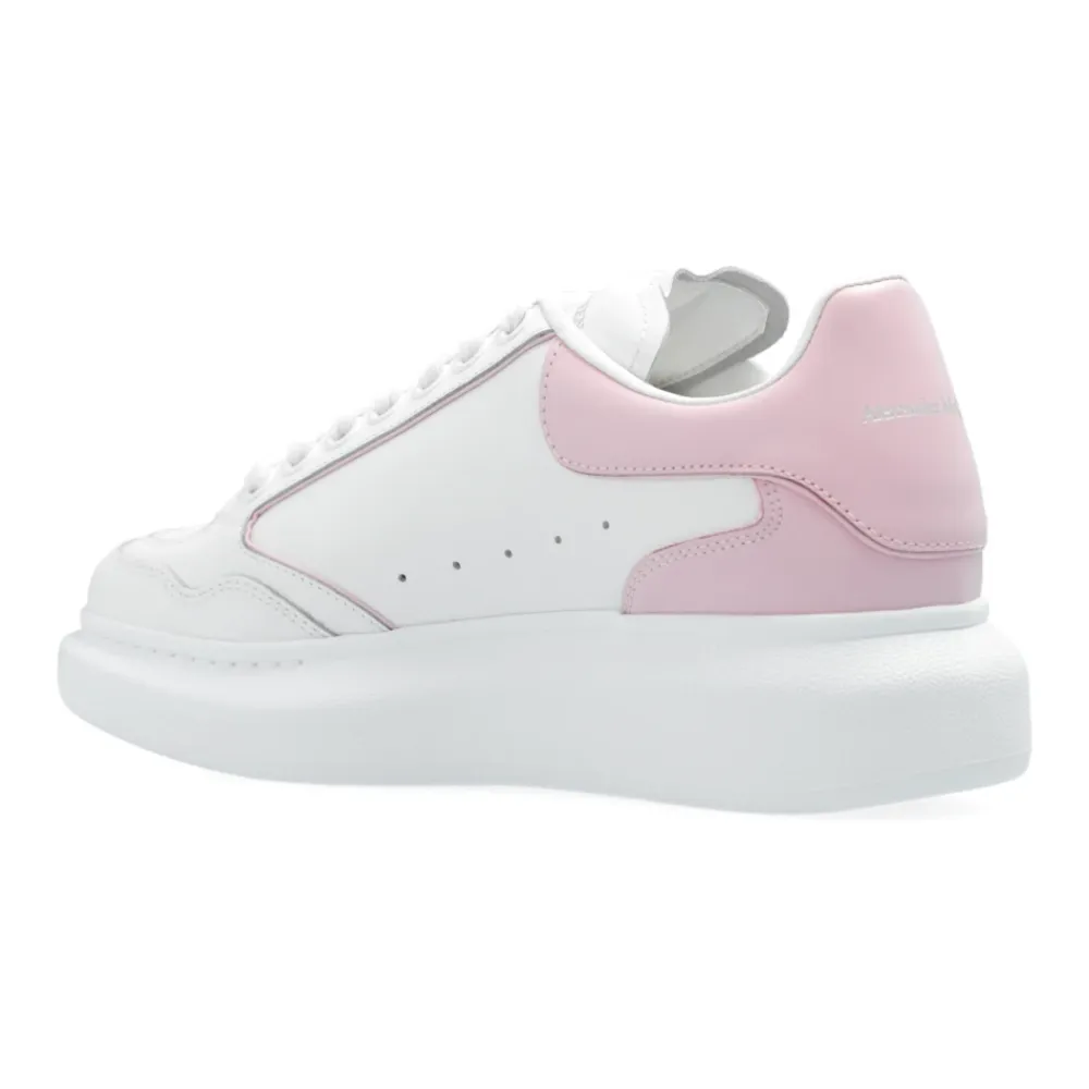 Hvide og lyserøde Larry sneakers fra Alexander McQueen. Fremstillet af glat læder, har dette snørebåndpar en sølvfarvet logo-print, perforeringer på siden, hvid gummisål og udskiftelige snørebånd.Sålens højde: 3,5 cmSålens højde på det højeste punkt: 5 cm