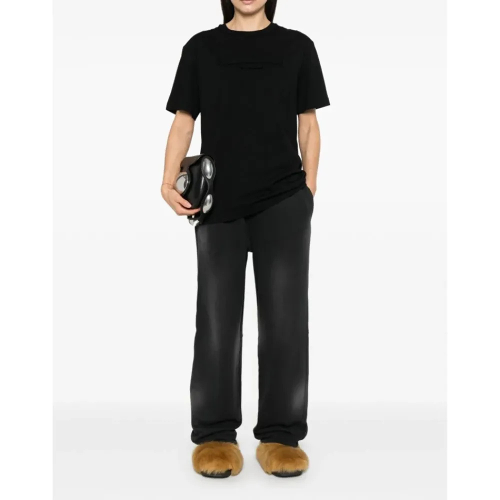 Alexander Wangs Embossed Logo Crew Neck T-shirt kombinerer en tidløs crew neck-silhuet med et subtilt præget logo for et rent, ophøjet hverdagslook. Designet til nem lagdeling og komfortabel brug, passer den til alsidige, afslappede looks. Vigtige egenskaber: Sort | Bomuld | Rund hals | Præget logo på brystet | Lange ærmer | Slutter ved hoften | Mål og pasform: Oversized fit | Unisex-størrelser | Sammensætning og pleje: Krop: 100% bomuld | Kant: 100% bomuld | Maskinvask