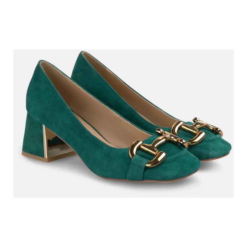 ALMA EN PENA sko med hæl, med metalbøjle og firkantet snude. Slip-on konstruktionen giver let påtagning og en raffineret profil til outfits til både dag og aften. Vigtigste egenskaber: Grøn | Slip-on | Metalbøjledetalje | Firkantet snude | Dimensioner og pasform: Hælhøjde: 6 cm