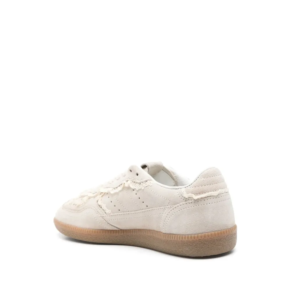 Alohas Tb.490 Crochet Sneakers kombinerer en lav profil i ruskind med hæklede detaljer for en raffineret hverdags-sneaker. Stilen kombinerer en rund tå og snørelukning med en gummisål for afslappet komfort. Vigtige egenskaber: Creme | Ruskind | Gummisål | Lav 2 cm hæl | Snørelukning foran | Brandet indersål | Inkluderer alternative sløjfer og snørebånd | Hæklede detaljer | Rund tå | Perforerede indsatser | Synlige syninger | Logo præget på pløs og sider | Polstret lav kant | Dimensioner og pasform: Hælhøjde: 2 cm | Sammensætning og pleje: Overdel: 100% koskind | Foring: 100% koskind | Indersål: 100% koskind | Ydersål: 100% gummi | Pynt: 100% bomuld
