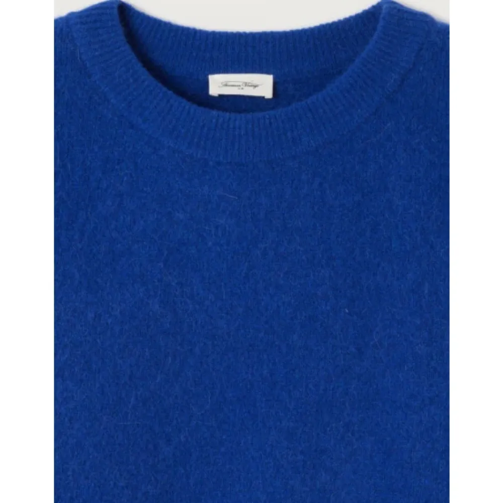 American Vintage Vitow Sweater er en løstsiddende strik med bådudskæring, der kombinerer varme med en blød fornemmelse, ideel til lagdelte hverdagslooks. Nøgleattributter: Blå | Bleu Royal | Alpaka og uld | Varm | Blød fornemmelse | Bådudskæring | Lange ærmer | Ribkanter | Cropped, ballon silhuet | Dimensioner & pasform: Oversized pasform | Cropped længde – sidder ved hofterne | Sammensætning & pleje: 34% alpaka | 34% uld | 29% polyamid | 3% elastan