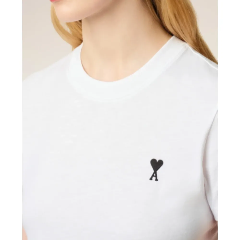 Ami Paris T-shirt Coeur kombinerer klassisk bomuldskomfort med mærkets signatur broderede hjertemotiv, ideel til hverdagsbrug. Vigtige egenskaber: Hvid | Bomuld | Broderet hjertemotiv | Sammensætning & pleje: Bomuld