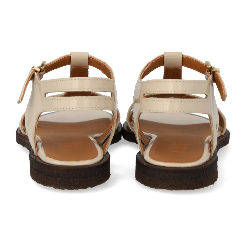 Oplev elegancen ved stropsandalen med ankelrem fra Angulus, der har et elegant design i laklæder, perfekt til alsidig styling. Produkt detaljer: Beige | Laklæder | Åndbart læder | Justerbar ankelrem | Polstret læder indersål | Rund snude | Gyldent spænde | Farvet brun rågummisål | Dimensioner og pasform: Normal pasform | Sammensætning og pleje: Laklæder | Chromfrit læderfor | FSC-certificeret brun rågummisål