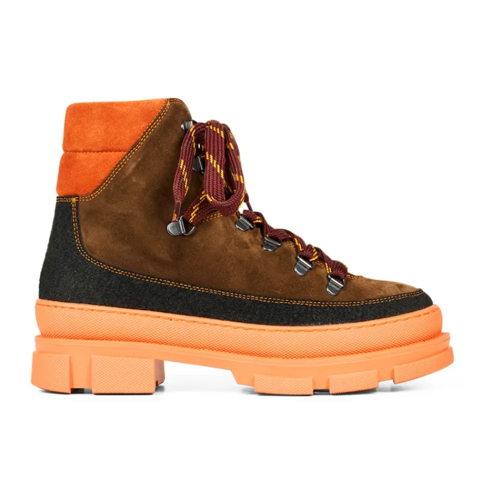 Præsenterer Angulus Lace-up Boots til kvinder – en rå og stilfuld kort støvle med uldfoer, snørebånd og track sål. Denne støvle kommer i en smuk multifarvet kombination af sort, mørk olivengrøn og orange, med en gummisål. Det lækre uldfoer holder dine fødder varme i de kolde måneder. Den har en rund snude, tofarvede nylon snørebånd, dekorative kontraststikninger, kromfrit og åndbart uldfoer samt et mellemhøjt skaft med vatteret ruskindsdetalje for ekstra støtte og komfort. Ydersålen er en blød og fleksibel track gummisål, der giver godt fodfæste. Fremstillet af naturligt og åndbart skind, designet i Danmark og håndlavet med kærlighed i Portugal. Vi anbefaler at påføre imprægneringsspray før brug. Pasform: Normal pasform. Materiale: Gummi/Skind. Foer: Uldfoer. Sål: Gummi. Style nr.: 7723-102-2282.