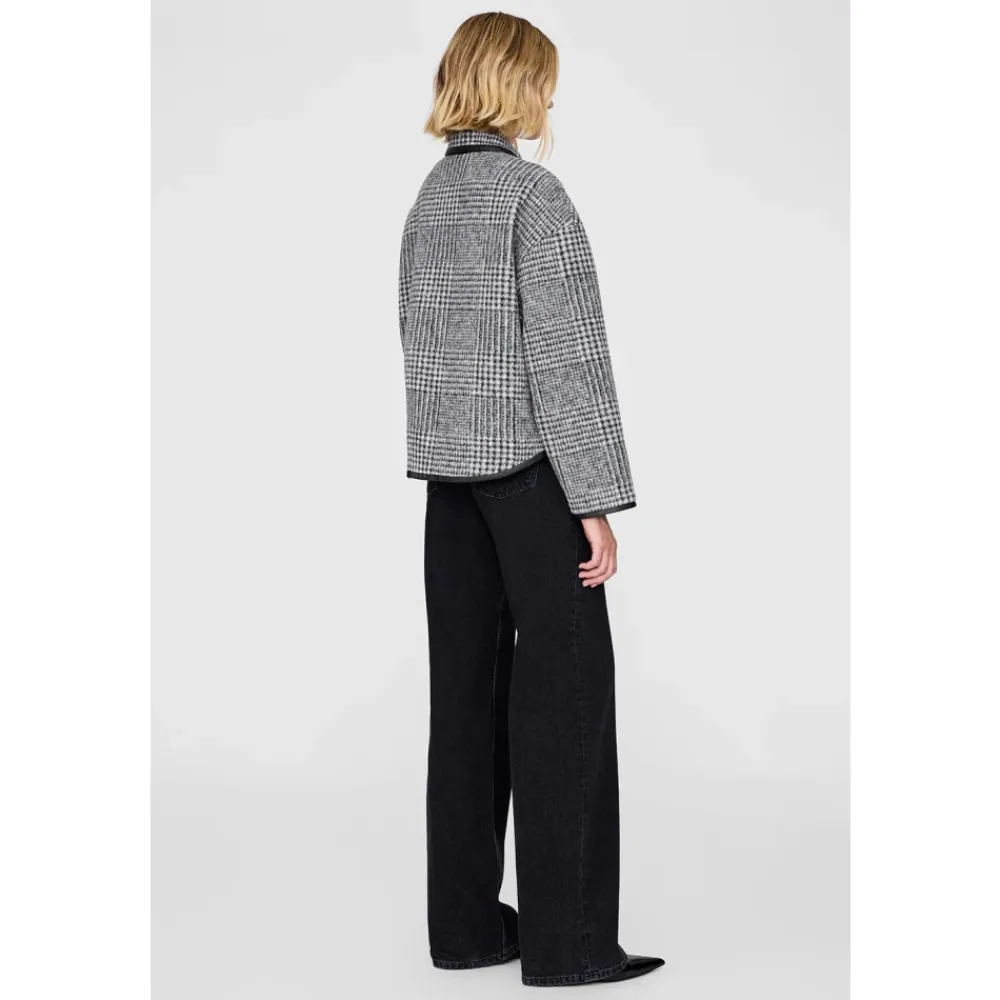 Anine Bing Camden Jacket er en moderne fortolkning af den klassiske uldjakke, designet til stilfuld lagdeling med en boxy, cropped silhuet og kontrast faux-læderkant. Vigtigste egenskaber: Grå | Uldblanding | Mellemvægt | Ikke-stretch | Knaplukning foran | To forlommer | Fuldt foret | Plaidmønster i sort og grå | Spread collar | Kontrast faux-læderkant | Sølvknapper | Mål og pasform: Længde: 65 cm (størrelse S) | Bryst: 112 cm (størrelse S) | Ærmelængde fra midten af ryggen: 89 cm (størrelse S) | Boxy pasform | Cropped længde (størrelse S) | Sammensætning og pleje: 87% polyester | 8% akryl | 5% uld | Maskinvask kold, hæng til tørre.
