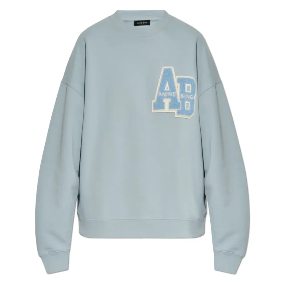 Anine Bings Miles Sweatshirt kombinerer en afslappet, oversized silhuet med et markant monogrammærke, der tilbyder minimalistisk hverdagsstil og behagelig brug. Vigtige egenskaber: Lyseblå | Blå | Bomuld | Blød jersey-følelse | Robust, struktureret stof | Pullover-stil | Ribstrikkede manchetter for sikker pasform | Generøst oversized for bevægelsesfrihed | Rund halsudskæring | Stort monogrammærke med frottéfinish | Printfrit, minimalistisk look | Ribstrikkede manchetter og kant | Dimensioner & pasform: Oversized pasform | Nedadvendte skuldre | Brede ærmer | Sammensætning & pleje: 100% bomuld | Maskinvask