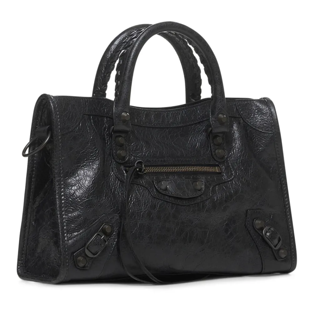 Forkæl dig selv med denne Balenciaga håndtaske lavet af historisk Arena lammeskind. Med to håndflettede læderhåndtag, en aftagelig og justerbar skulderrem, messing hardware og flere lommer til dine essentielle ting. Produceret i Italien. Mål: L 29,9 x H 19 x D 9,9 cm.