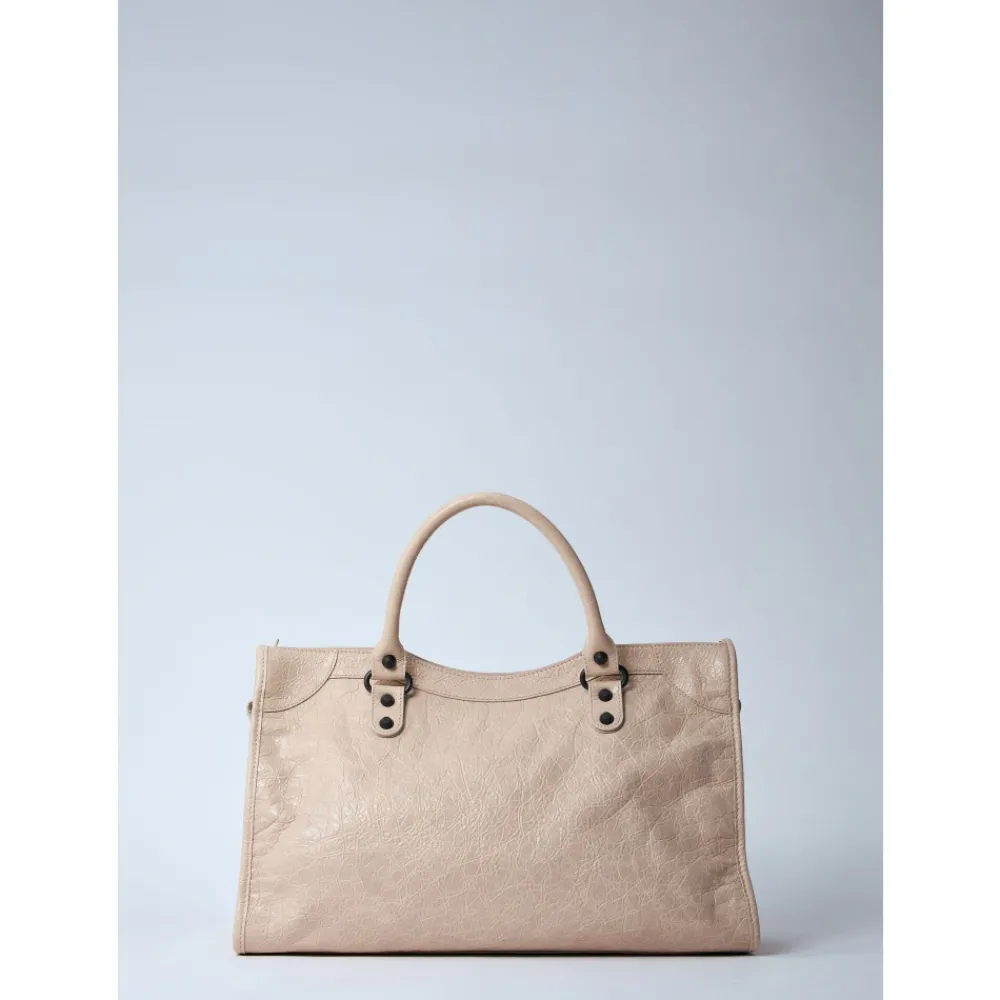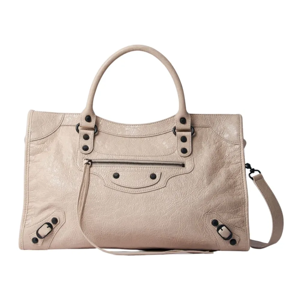 Forkæl dig selv med denne Balenciaga Le City håndtaske i krøllet læder. Designet til den moderne kvinde, denne tote taske har to håndtag, en justerbar og aftagelig skulderrem, lynlåslukning, signatur nitter og flere lommer til dine væsentlige ting. Lavet i Italien af 100% læder.
