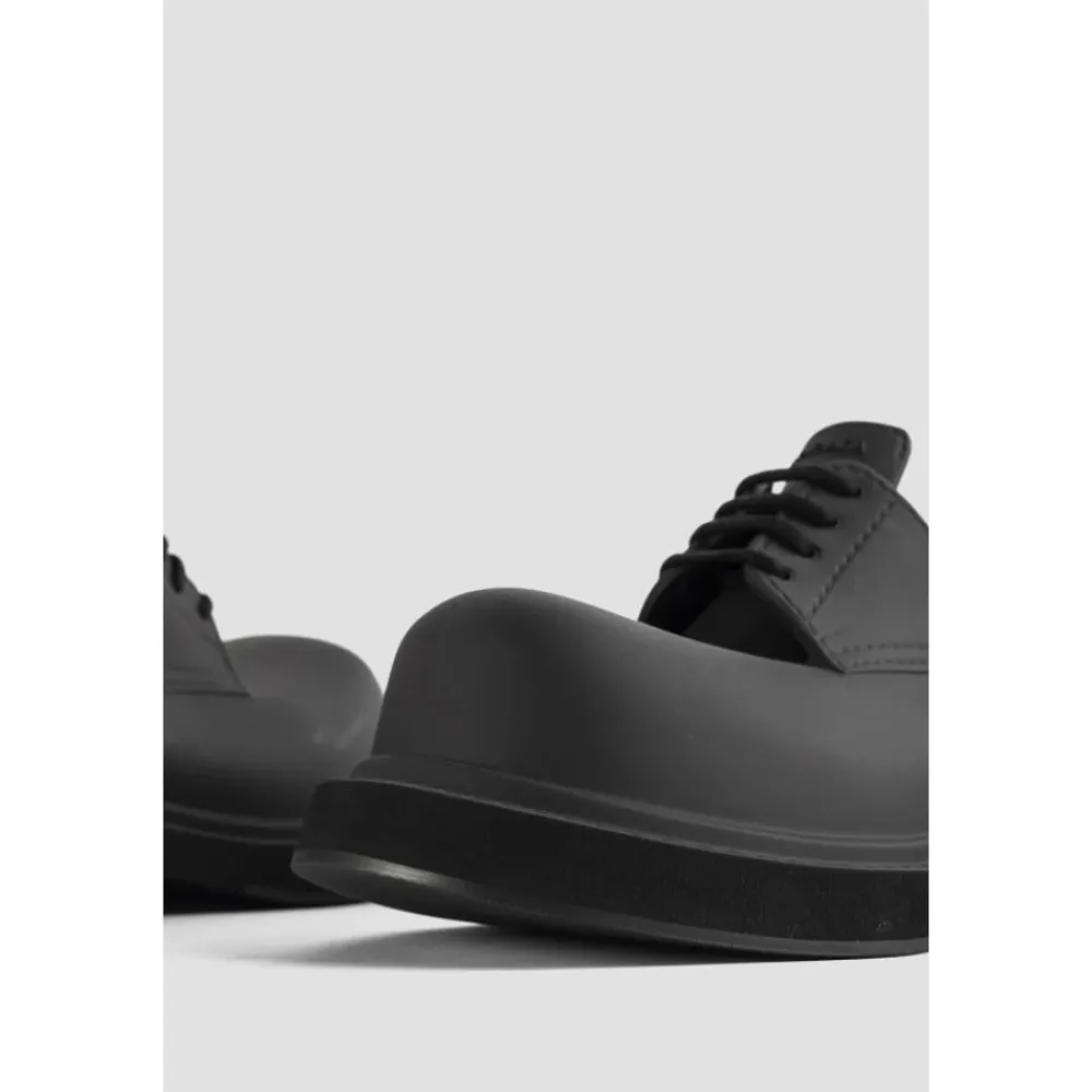 Træd ud i stil med disse Balenciaga sorte Derby model Steroid flade sko. Designet til den moderne kvinde, har disse snøresko en ekstra rund vamp og en 20 mm krumning for en unik og overdrevet volumen. Fremstillet af letvægtsmateriale og produceret i Italien, tilbyder disse sko både komfort og stil. Den snøret vamp med 4 øjer giver et strejf af sofistikering til ethvert outfit. Hæv dit skospil med disse fashionable flade sko. Produkt ID: 717805W0FOI1000.