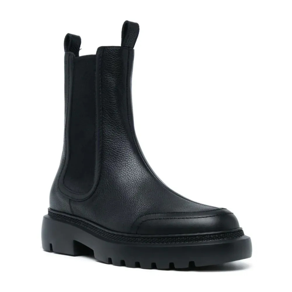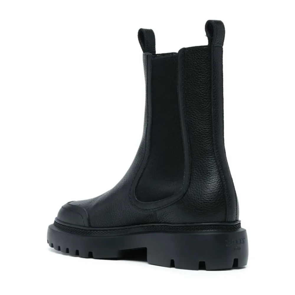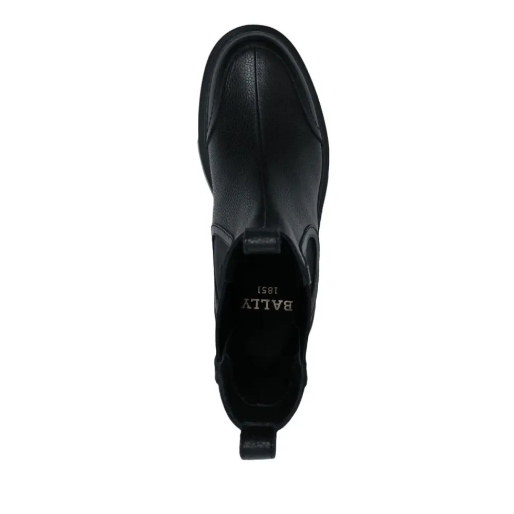 Træd ud med stil i Ginny Flade Læderstøvler med Bred Læg fra Bally, fremstillet af førsteklasses læder for et tidløst look. Produkt detaljer: Sort | 100% Læder | Chelsea støvle stil | Ankel længde | Dimensioner og pasform: Normal pasform | Sammensætning og pleje: 100% Læder | Rengør med en blød klud