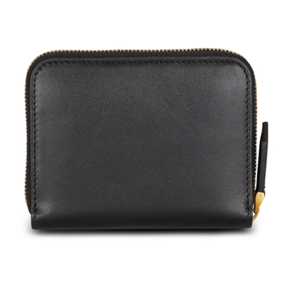 Balmain B-Buzz Læderpung med lynlås er en kompakt hverdagspung med et signaturindgraveret gyldent B-logo og en sikker lynlåslukning til organiseret opbevaring. Designet til praktisk brug, holder den kort og pengesedler pænt adskilt i et elegant kalveskindsdesign. Nøgleattributter: Sort | Kalveskindslæder | Gylden metallisk lynlåslukning med læderstrop | Trykknapdetalje på indersiden af rummet | 3 kortpladser | Seddelrum | Indgraveret gyldent metal Balmain B-logo på forsiden | Glat kalveskindslæderfinish | Gylden metalhardware | Mål og pasform: 11 x 9 x 2 cm | Sammensætning og pleje: 100% kalveskindslæder