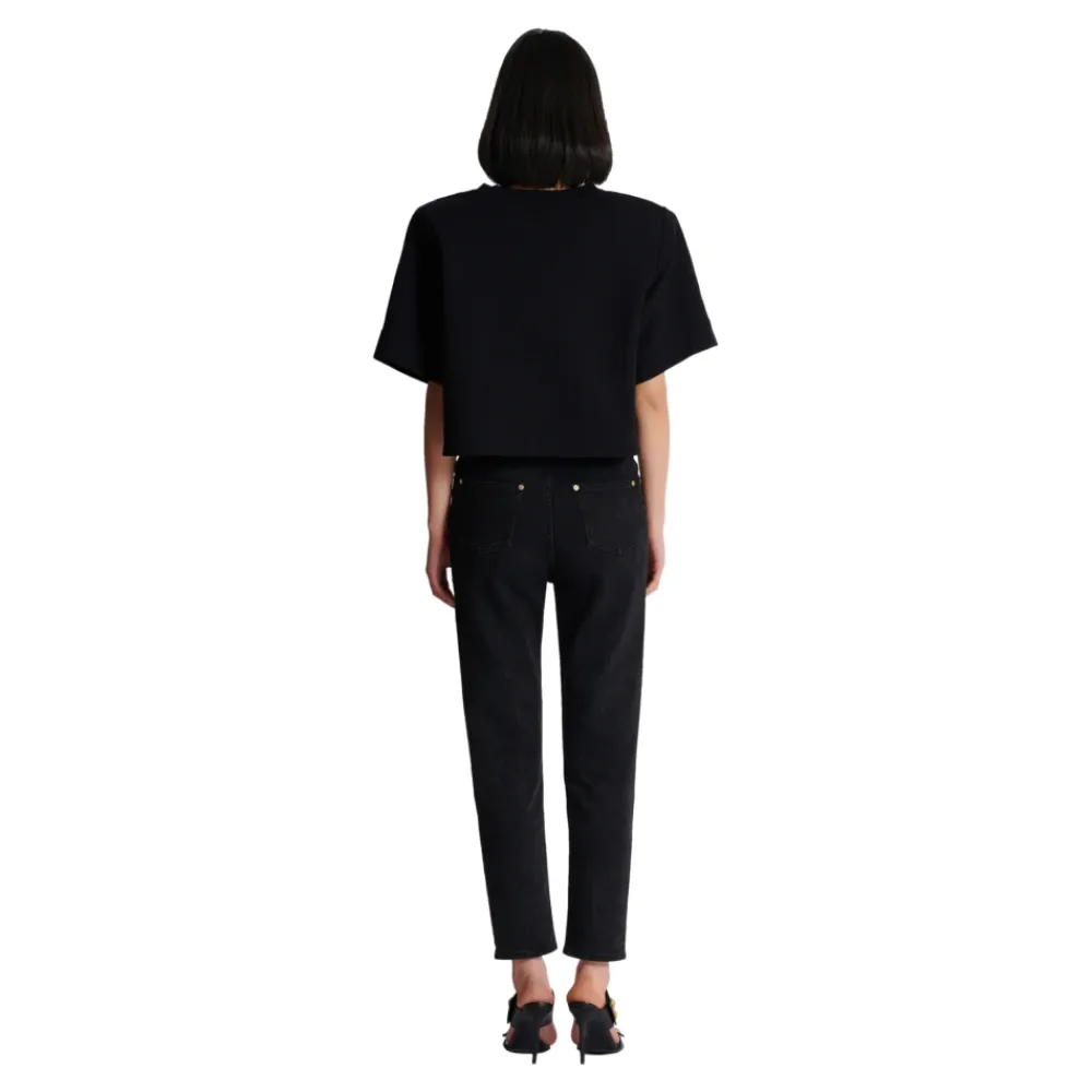 Beskåret sweatshirt med knapperAfslappet pasformStrukturerede skuldreRund hals med ribstrikket kant3 dekorative Double Chain Lion knapper i guldmetal på skulderenKorte ærmerModellen måler 178 cm og bruger en størrelse MHovedmateriale: 100% bomuldProduceret i ItalienVare: DF1EE101JB53100% af bomuldsfibrene, der er brugt til at lave dette tøj, er certificeret og dyrket