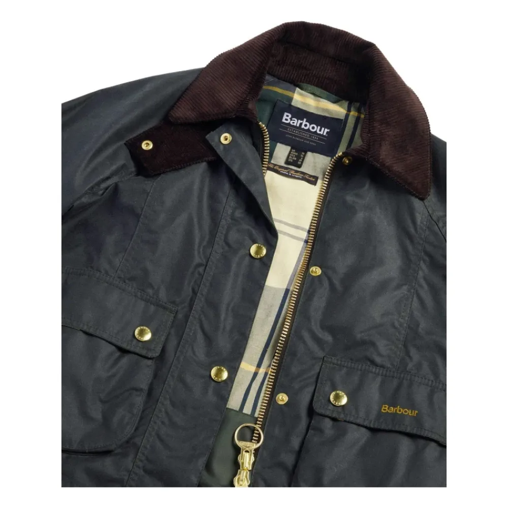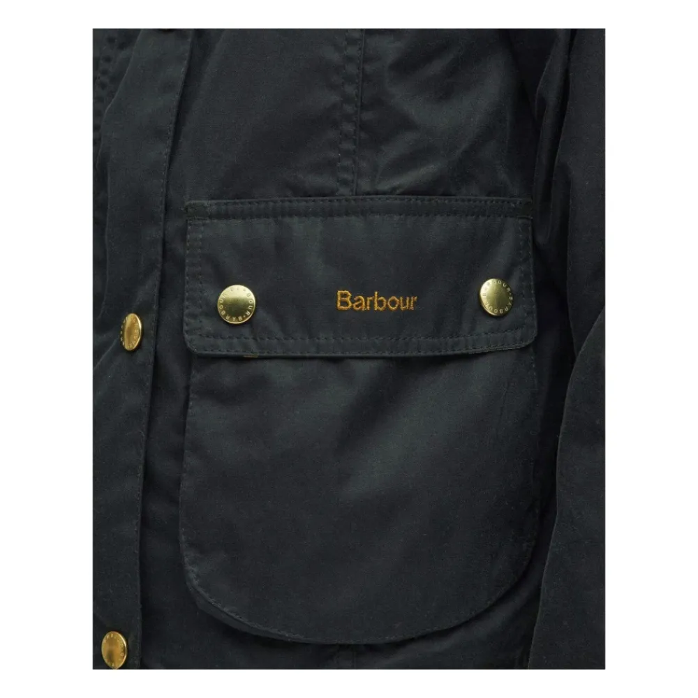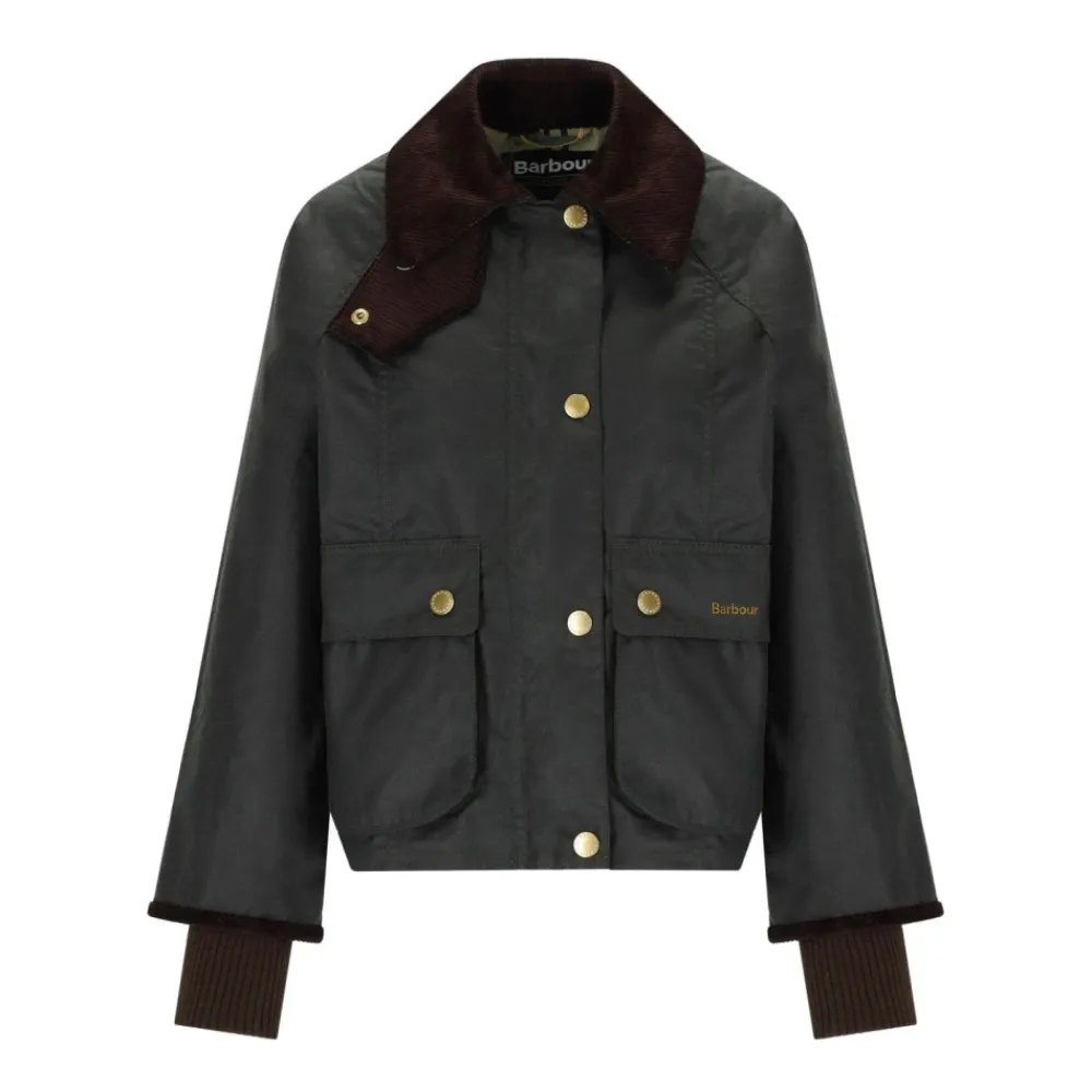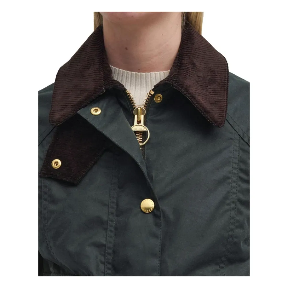Barbour Cropped Beadnell Waxed Jacket kombinerer klassisk, vokset bomuldsbeskyttelse med en beskåret, moderne silhuet. Ideel til overgangsvejr, da den kombinerer funktionel vejrbestandighed med klassiske detaljer som en fløjlskrave og signaturhardware. Nøgleattributter: Grøn | Vokset bomuld | Vandafvisende | Vindafvisende | Lynlåslukning foran skjult af knapstolpe | Klaplommer med knaplukning | Ribstrikkede manchetkanter for beskyttelse mod træk | Beskåret længde | Fløjlskrave med ribbet tekstur | Guldfarvet metalknapstolpe | To klaplommer foran med knaplukning | Broderet logo på lommen | Ribstrikkede manchetter | Mål og pasform: Ryglængde: 56 cm | Almindelig pasform | Sammensætning og pleje: Ydermateriale: 100% vokset bomuld | For: 65% polyester, 35% bomuld | Ærmefor: 100% polyester | Drypstrimmel: 100% polyester | Krave: 100% bomuld | Dekoration: 95% akryl, 3% polyester, 2% elastan | Må ikke vaskes. Rengøres kun med en svamp.