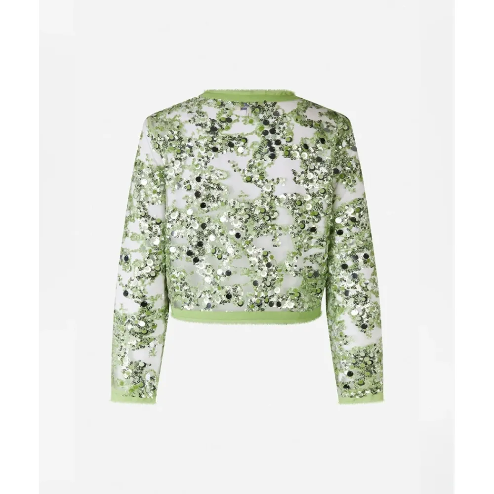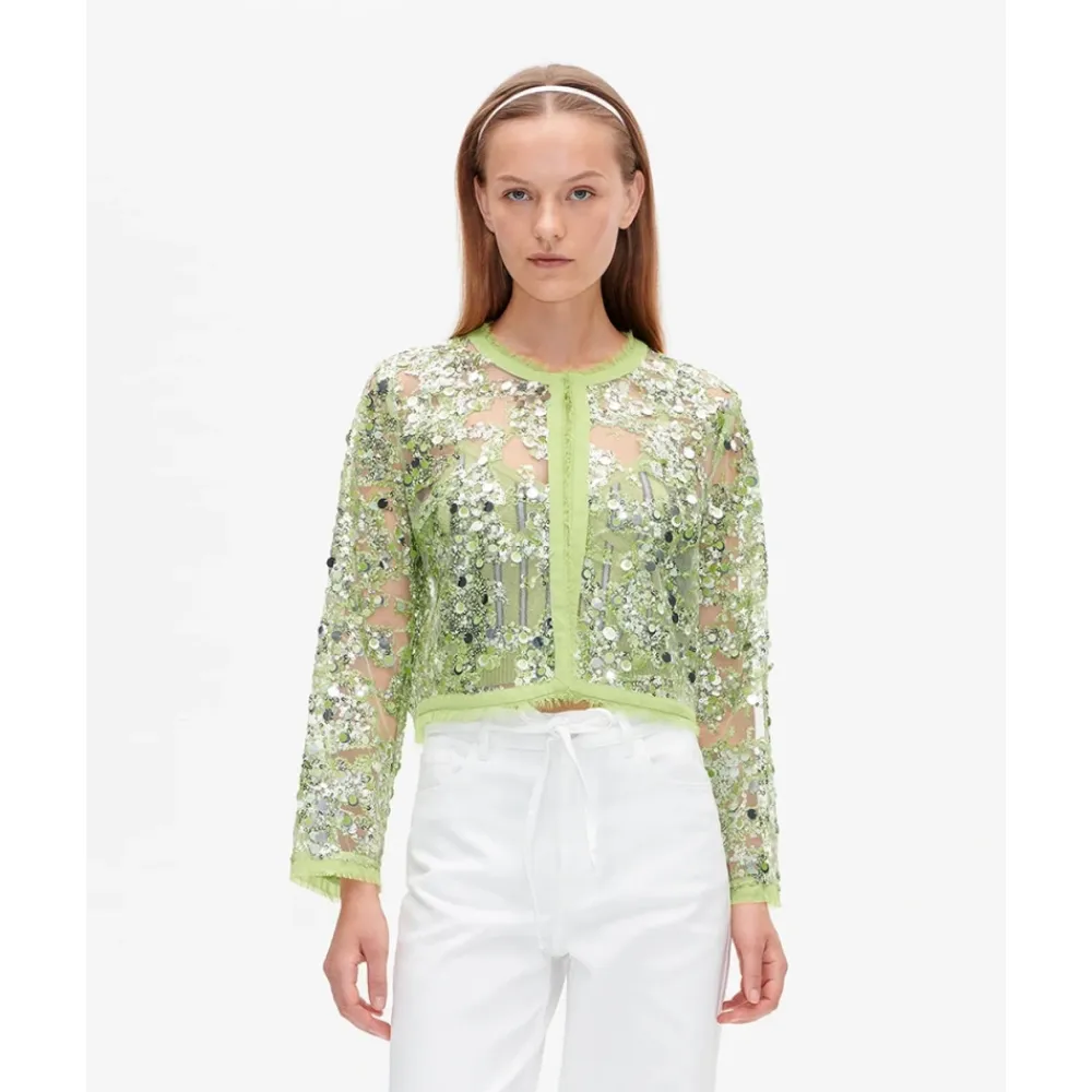 Baum und Pferdgarten Bethina Jacket er en cropped, transparent pailletjakke designet til at tilføje glans til lagdelte looks. Dens transparente base og flossede kanter gør den ideel til aftenoutfit eller til at løfte afslappede ensembler. Nøgleattributter: Herbal garden | Polyester | Ingen stræk | Enkel hægtelukning i nakken | Transparent base | Pailletbesætning | Flossede kanter | Rund halsudskæring | Dimensioner & pasform: Afslappet pasform | Lige snit | Cropped længde | Bestil din normale størrelse | Sammensætning & pleje: 100% Polyester (hovedstof)