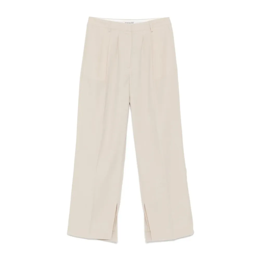 Opgrader din garderobe med disse Birgitte Herskind straight bukser i lys beige. Med skjult frontknap, hægte og lynlås lukning, bæltestropper, to sidelommer og to baglommer.