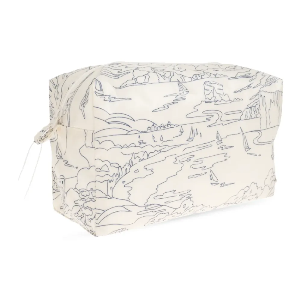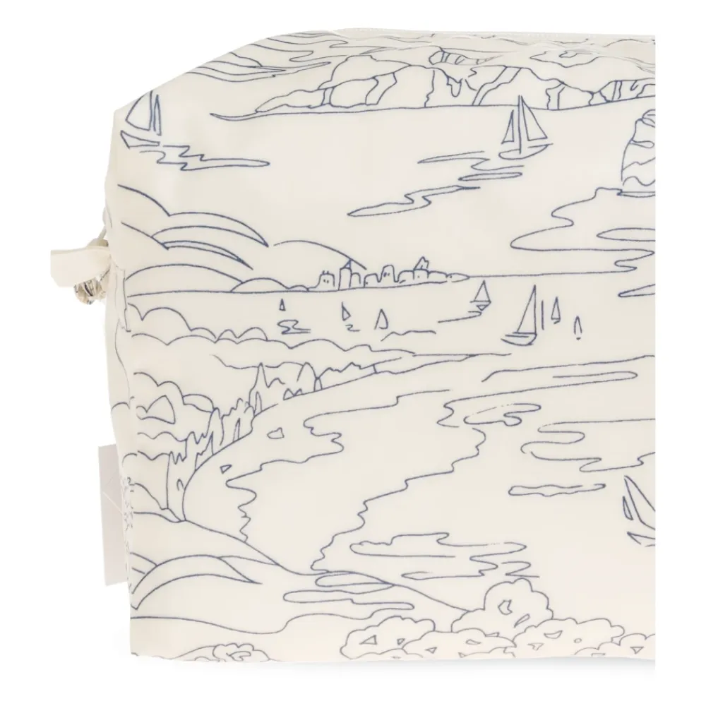 Bonpoint Toilettaske med print er en quiltet kosmetikpung designet til stilfuld opbevaring af toiletartikler og småting. Denne taske kombinerer et raffineret, blødt stof med et lineært landskabstryk for et elegant hverdagslook. Nøgleegenskaber: Beige | Creme | Blød følelse | Holdbart materiale | Struktureret rektangulær form for organiseret opbevaring | Sidestropper for en dekorativ funktionel detalje | Rektangulær geometrisk form | Quiltet foring | Lineært landskabstryk med både, vegetation og skyer | Indvendig Bonpoint kirsebærlogo detalje | Mål & pasform: Højde: 19 cm | Bredde (bredeste punkt): 24 cm | Bundbredde: 9 cm