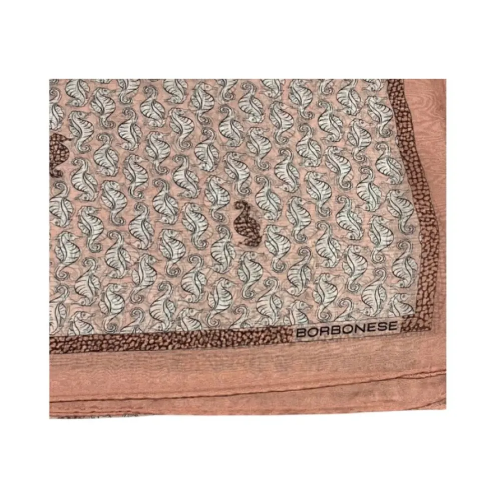 Borbonese præsenterer Silk Scarf, et silketørklæde på 90 cm x 90 cm med et søhestetryk og kontrasterende lyserød kant. Det tilføjer et raffineret fokuspunkt til outfits. Vigtigste egenskaber: Pink | Silke | Søhestetryk | Kontrasterende lyserød kant | Firkantet form | Borbonese logo detalje | Mål og pasform: 90 cm x 90 cm | Sammensætning og pleje: 100% Silke