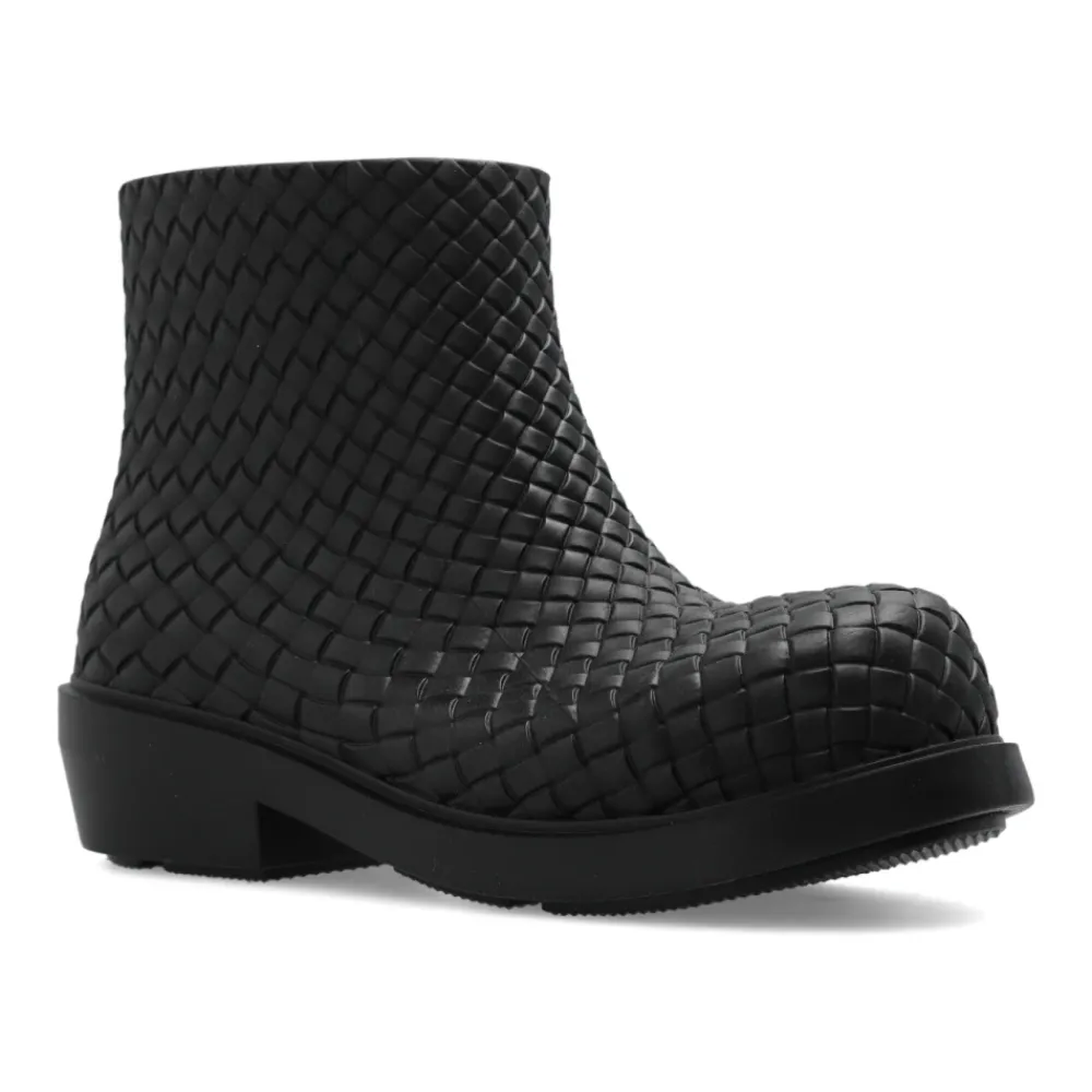 Fireman Ankelstøvlen fra Bottega Veneta kombinerer stil og funktionalitet med sit signatur ‘intrecciato’-vævning og robuste gummikonstruktion, perfekt til regnvejrsdage. Produkt detaljer: Sort | Gummi | Vandafvisende | Intrecciato vævning |