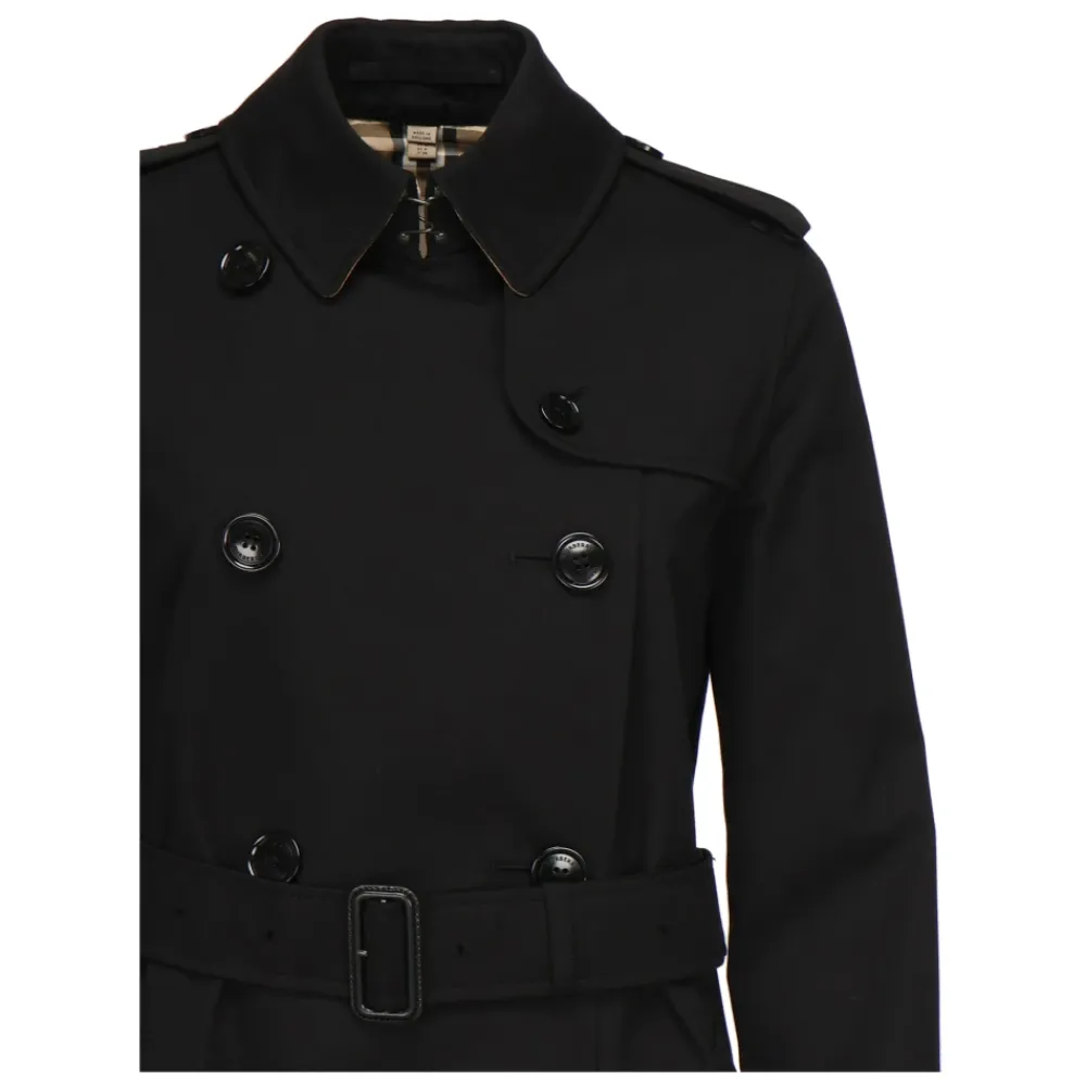 Burberry Mid-length Kensington Heritage Trenchcoat kombinerer klassisk skrædderkunst med praktisk beskyttelse. Denne mid-length trenchcoat er skåret i en almindelig pasform af vandafvisende bomuldsgabardine til hverdagsbrug og tidløs stil. Vigtige egenskaber: Sort | Bomuldsgabardine | Vandafvisende | Dobbeltknappet lukning | Hægte-og-øje-krave med halslås | Spændejusterbart bælte | Epauletter | Udvendige sidelommer med knapper | Justerbare bælteærmer | Knaplukket slids | Leveres med beklædningspose | Mid-length silhuet | Isatte ærmer | Burberry Check-foring og underkrave | Kalveskindsspænder | Slids med knap bagpå | Mål og pasform: Længde: 97 cm (størrelse UK 10) | Almindelig pasform | Passer normalt i størrelsen | Sammensætning og pleje: Yderlag: 100% bomuld | Foring: 100% bomuld | Ærmeforing: 100% viskose | Spænder: 100% kalvelæder | Professionel rensning.