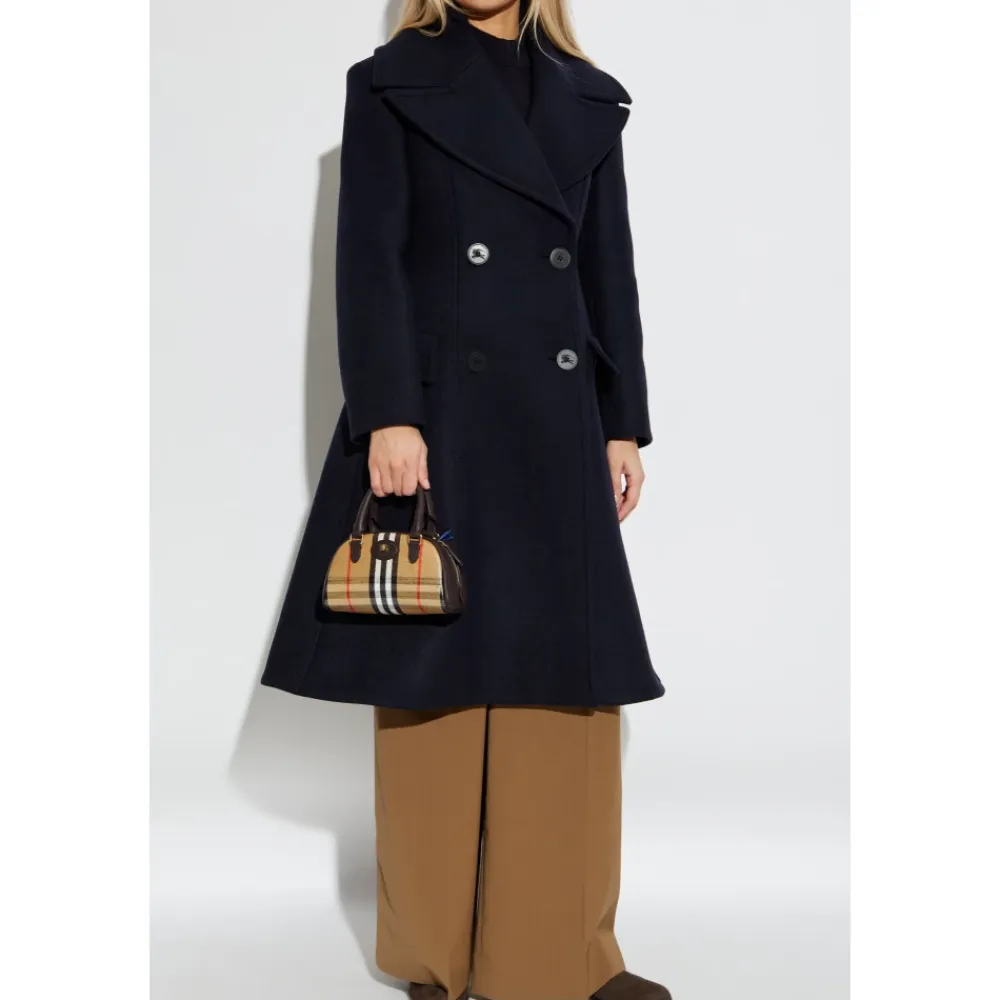 SILVERLAKE-frakken fanger med sin ædle enkelhed og forfinede skrædderkunst og bringer et pust af tidløs elegance til ethvert outfit. Skabt af modehuset BURBERRY fortryller den med en gennemtænkt silhuet: den tilpassede top fremhæver subtilt figuren, mens den svungne ‘fit & flare’ bund tilføjer lethed og ynde til det hele. Den dybe nuance af mørk marine harmonerer med den minimalistiske form og fraværet af unødvendige pynt, hvilket fremhæver frakkens alsidige, sofistikerede karakter. Designet skiller sig ud med en iøjnefaldende bred krave med store slag, der fungerer som en spændende detalje af denne vedvarende klassiker. Lavet af høj kvalitet uld med en mat, blød plysset tekstur og foret med luksuriøst cupro-stof, garanterer den enestående komfort og elegance i mange år fremover. Den dobbeltradede lukning med fire knapper hylder de traditionelle britiske stilarter. HVORFOR KØBE DETTE PRODUKT? * Unik, mesterlig designlinje signeret af Burberry * Eksklusivt materiale – uld og luksuriøst cupro-for * Tidløs, minimalistisk stil egnet til enhver sæson * Iøjnefaldende krave og fejlfri håndværk * Maksimal komfort og vedvarende ædel kvalitet Modelmålinger Højde: 177 cm Buste: 83 cm Talje: 61 cm Hofter: 89 cm Modellen har størrelse: 8