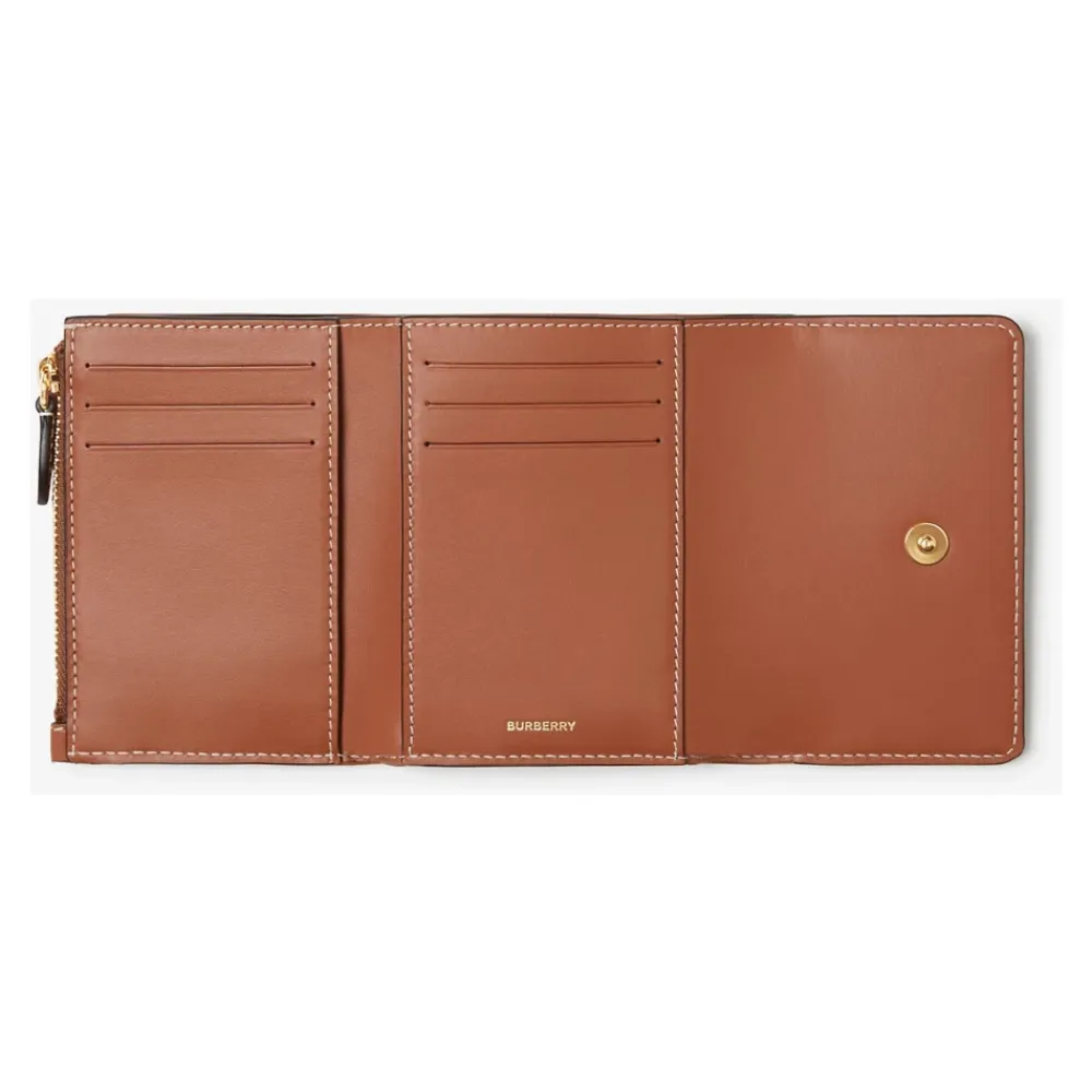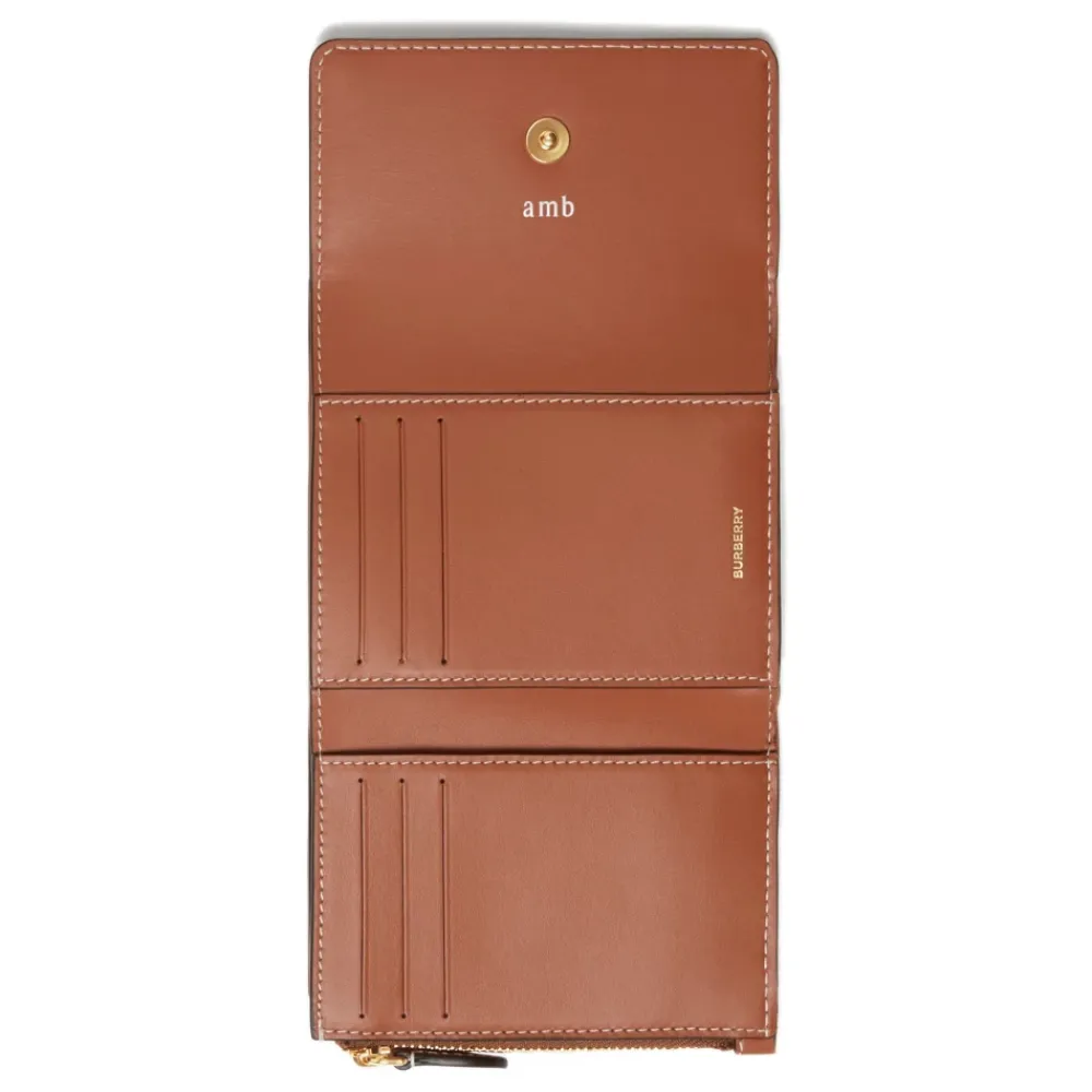Burberry Small Check Folding Wallet tilbyder kompakt, organiseret opbevaring med klassiske check-detaljer og flere lommer til daglig brug. Vigtige egenskaber: Beige | Læder | Foldbar top med trykknaplukning | Seks kortlommer | Lynlåsmøntrum | Seddelrum | Fem stiklommer | Check print | Håndmalede kanter | Poleret metalhardware | Præget logo indvendigt | Mål & pasform: 11,5 x 3 x 9 cm | Sammensætning & pleje: 100% læder