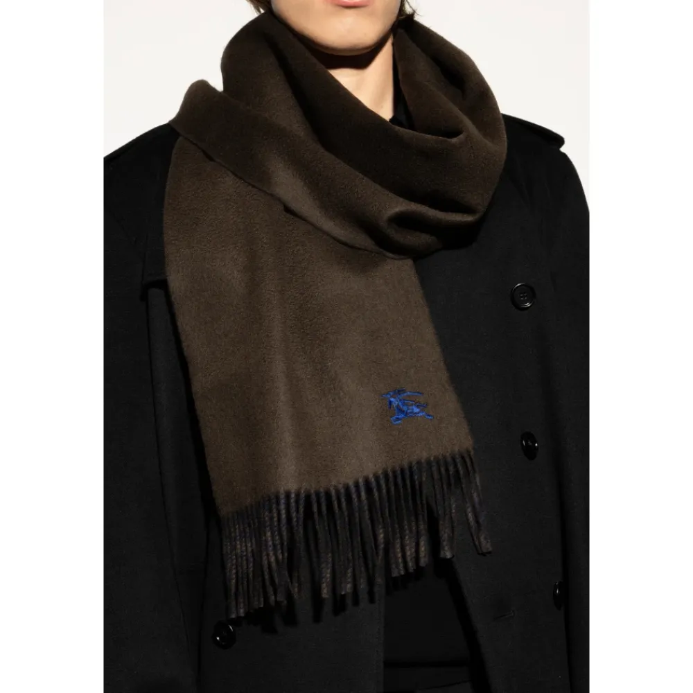 THE BURBERRY CASHMERE SCARF personificerer britisk elegance og sofistikeret minimalisme. Lavet af den fineste kashmir, fanger den med sin ekstraordinære blødhed, subtile glans og upåklagelige glathed. Den klassiske rektangulære form, suppleret med lange brune og mørkebrune frynser, skaber en tilbageholdt men raffineret sammensætning. Det broderede logo – en blå rytter til hest – gør et slående indtryk og fungerer som en dristig signatur på BURBERRY’s mesterlige håndværk. Den dybe brune farve på tørklædet harmonerer perfekt med vinterfarvepaletter, og fremhæver både formelle og afslappede outfits. HVORFOR VÆLGE DETTE PRODUKT? * Luksus, topkvalitets kashmir * Ikonisk Burberry detalje – broderet logo * Universal, minimalistisk design velegnet til klassiske smagsløg * Uovertruffen delikatesse og varme * Et fremragende valg til en eksklusiv gave Bredde: 30 cm Længde: 168 cm Modellens målinger Højde: 176 cm Buste: 85 cm Talje: 60 cm Hofter: 89 cm Modellens målinger Højde: 193 cm Bryst: 95 cm Talje: 82 cm Hofter: 93 cm