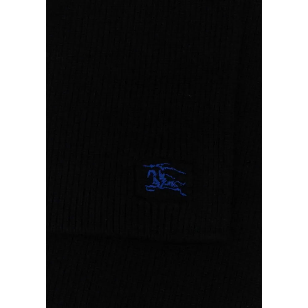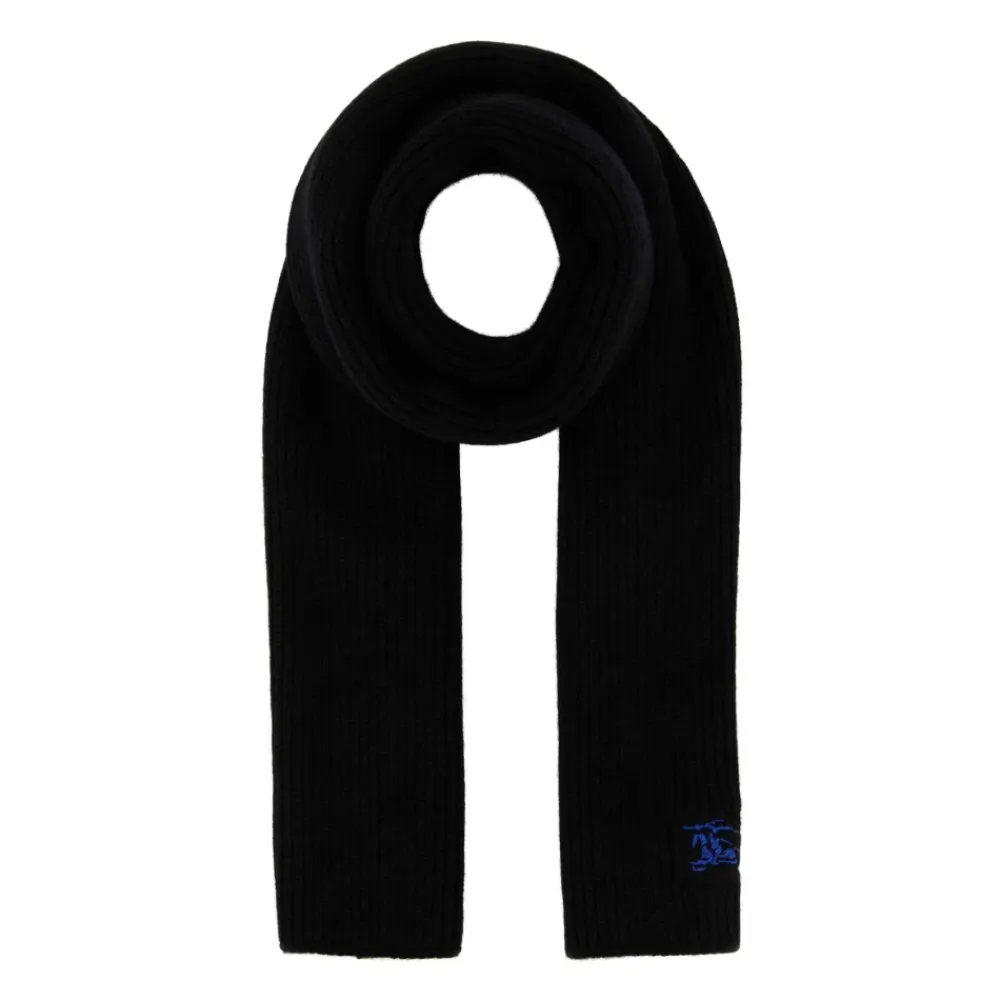 Burberrys ribstrikkede cashmere halstørklæde kombinerer en ribstrik med signaturlogo-broderi for et ultrablødt, isolerende tilbehør. Designet til lagdeling giver det raffineret varme og en ren, alsidig silhuet. Vigtigste egenskaber: Sort | Cashmere | Ultrablød finish | Isolerende varme | Rektangulær form | Frynseender | Ribstrik | Broderet Equestrian Knight Design (EKD) ved kanten | Vævet/applikeret Burberry-mærke | Mål & pasform: Længde: 180 cm | Højde: 25 cm | Sammensætning & pleje: 100% cashmere | Specialistrens