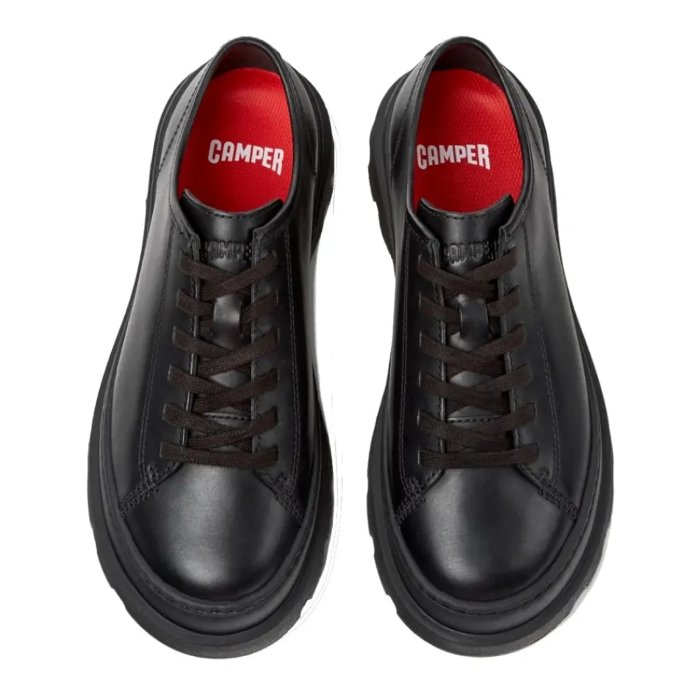 Camper snøresko i læder designet til hverdagsbrug, med en skridsikker BRIDGE® XTRAGRIP ydersål og polstret EVA-mellemsål for pålidelig komfort og trækkraft. Vigtige egenskaber: Black | | Koskindslæder | Forbedret greb | Slidstærk | Polstret mellemsål | PU indersål | EVA mellemsål | BRIDGE® XTRAGRIP gummi ydersål | Snørelukning | Lavprofil snøresko silhuet | Flad sål | Sammensætning og pleje: Koskindslæder | PU (indersål) | EVA (mellemsål) | Gummi (BRIDGE® XTRAGRIP ydersål) | Aftørres med en fugtig klud. Brug læderbalsam efter behov. Undgå at nedsænke i vand.