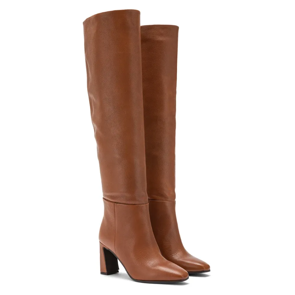 Carmens præsenterer Julia Eve Over-knee Støvlerne, en lårhøj støvle defineret af en markant, feminin silhuet og en karakteristisk firkantet hæl – ideel til glamourøse aftenlooks. Vigtigste egenskaber: Brun | Cognac | Over-knee (cuissardes) skaft | Firkantet hæl | Feminine, markante linjer