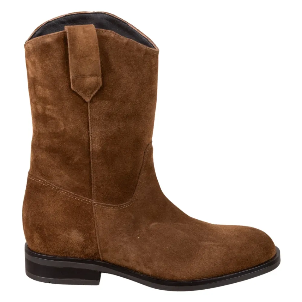 Carmens KIM LOW MOUSSE A56051 er en ankelstøvle i ruskind fra Kim Low-linjen, der har en skjult 4 cm intern kile, der tilføjer højde, mens den bevarer en sporty, praktisk profil. Vigtige egenskaber: Brun | Cioccolato | Ruskind | Slip-on lukning | Blødt kid læderfor | Latex sål | Ankelstøvle | Skjult intern kile | Lav hæl | Mandelformet tå | Dimensioner & pasform: Intern kile: 4 cm | Hælhøjde: 2 cm | Almindelig pasform | Sammensætning & pleje: 100% ruskind (overdel) | Blødt kid læder (for) | Latex (sål)