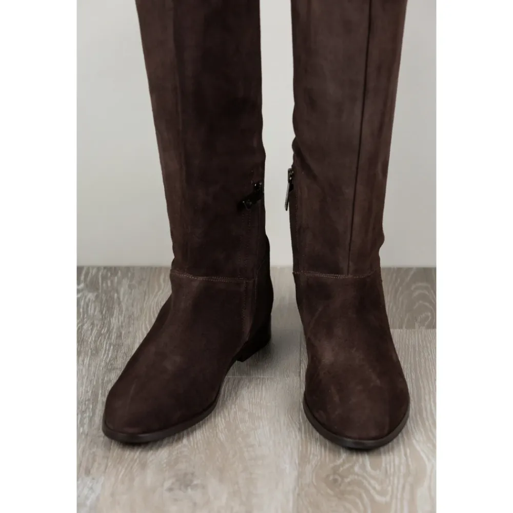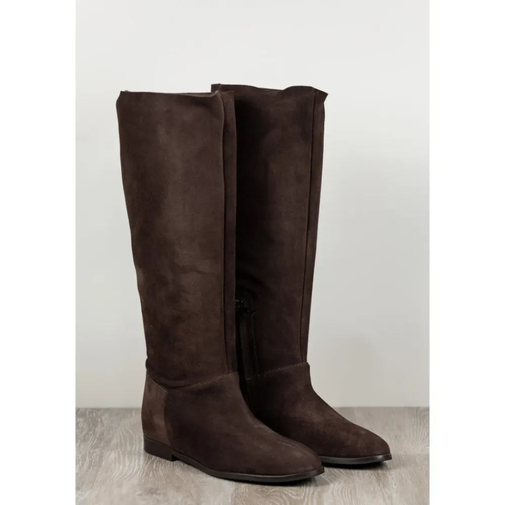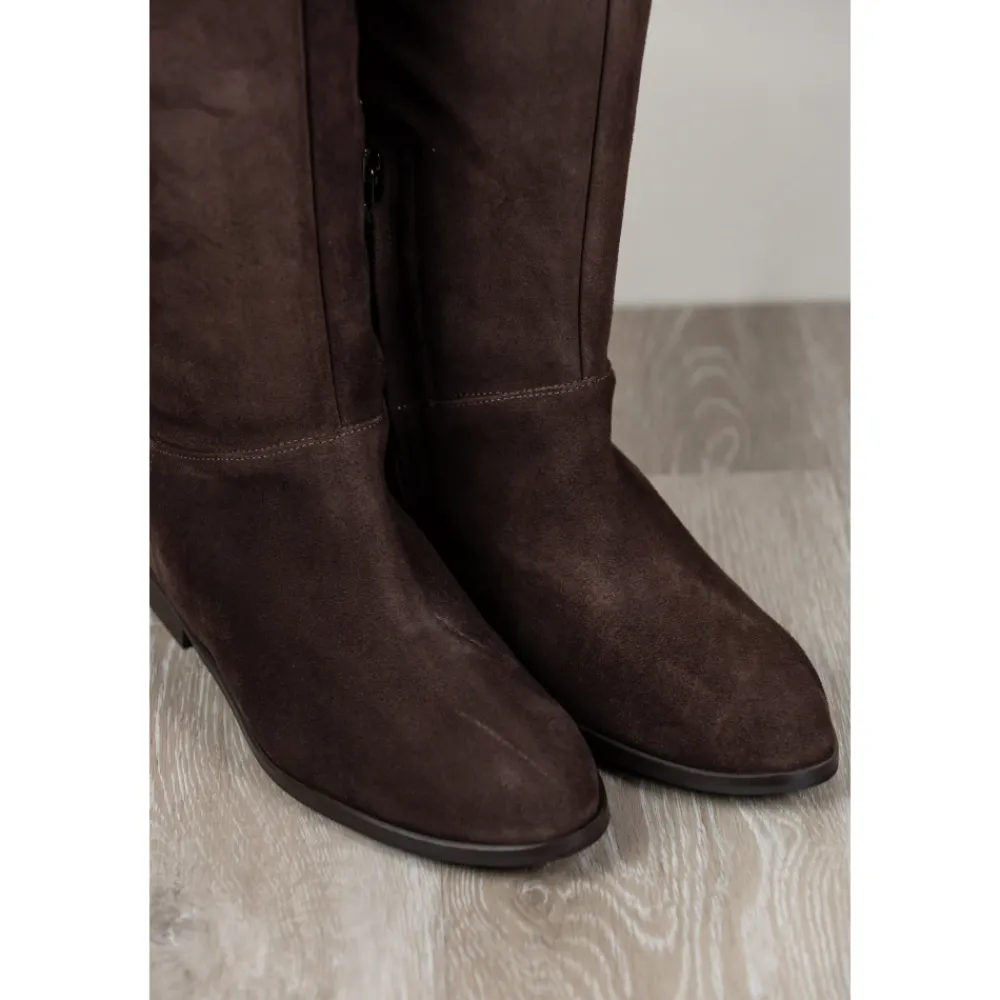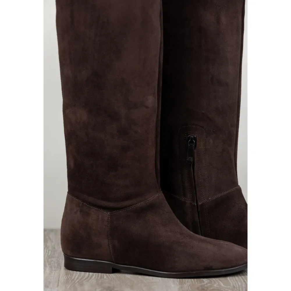Carmens Peter Fold er en høj støvle, der er defineret af en slank silhuet og en blød overdel i ruskind. Den er designet til raffineret hverdagsbrug og smarte, afslappede looks. Vigtigste egenskaber: Brun | Moro | Ruskind | Mikrofiberforing | TPU-sål | Høj støvle | Slank silhuet | Dimensioner og pasform: Hælhøjde: 1 cm | Sammensætning og pleje: Pelle di capretto scamosciata | Microfibra | TPU