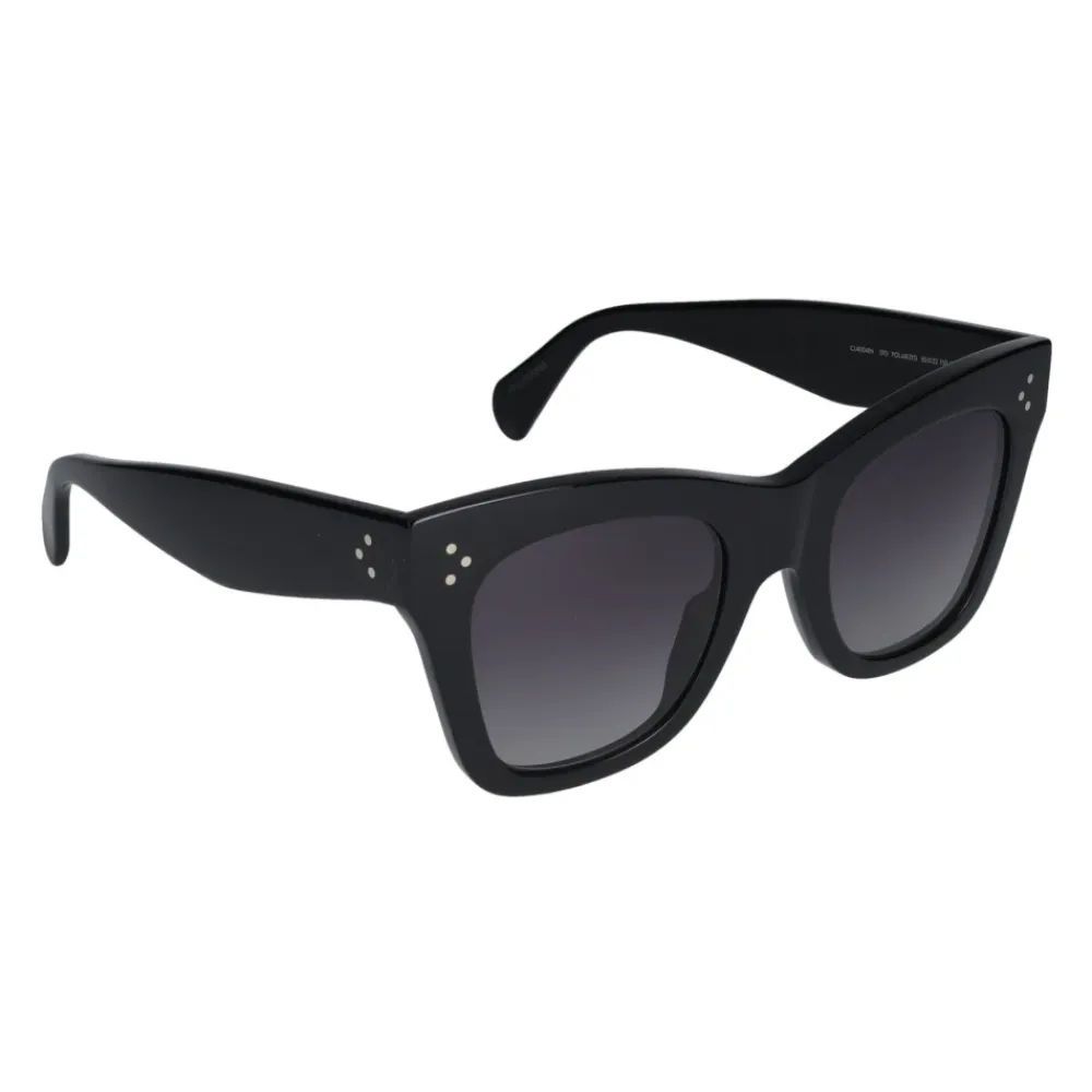 Forstærk din stil med disse sorte Celine solbriller med katteøjede stel lavet af acetat. De grå polariserede linser giver 100% UV-beskyttelse, mens de signatur tre prikker på fronten og tindingerne tilføjer et strejf af elegance. Linsebredde: 50 mm; Næsebroens længde: 22 mm; Tindingelængde: 150 mm.