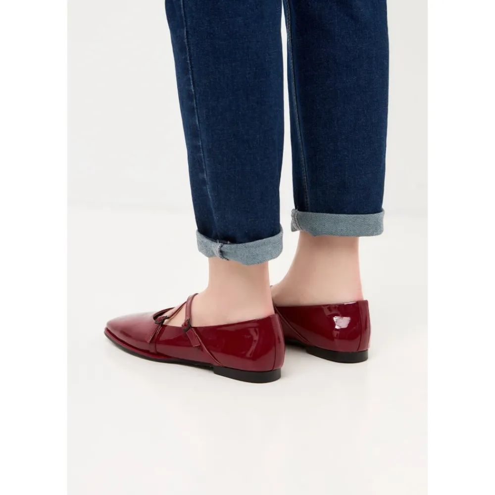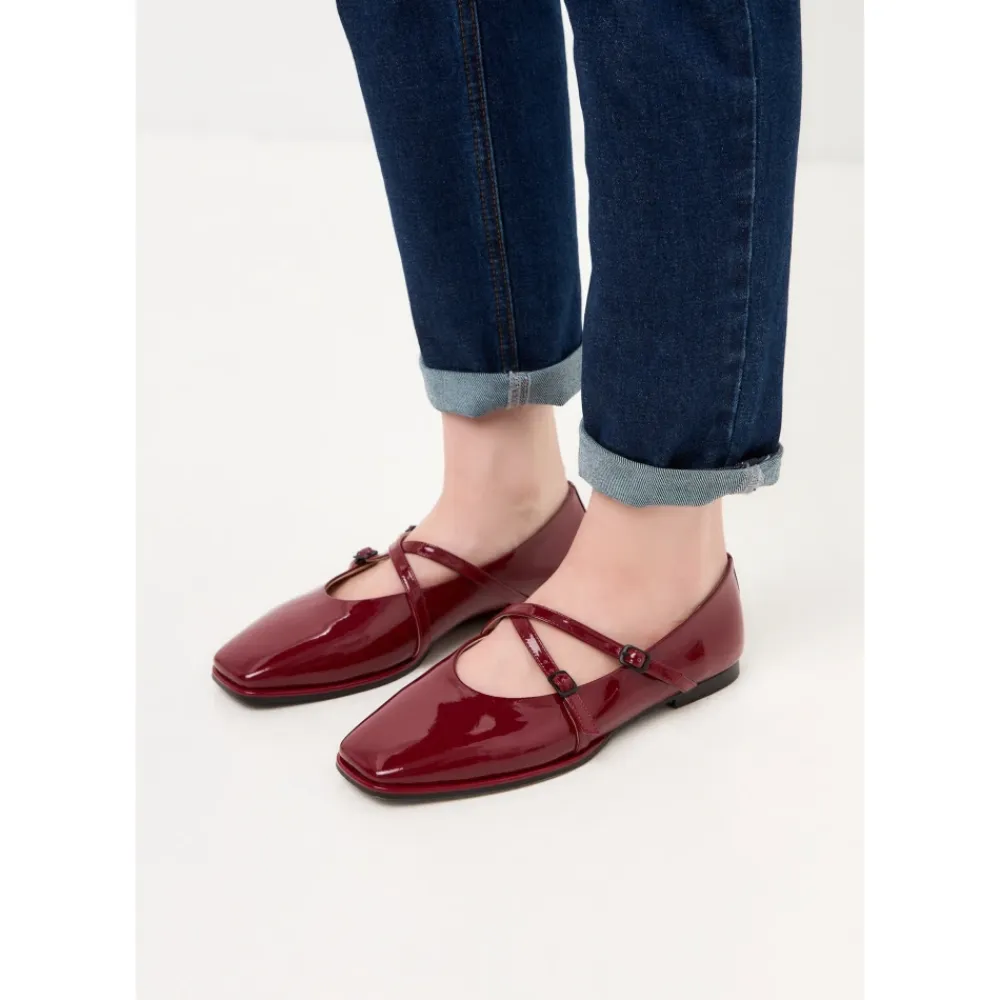 Forhøj din stil med vores ikoniske ballerinaer i laklæder. Lavet af høj kvalitet laklæder og med et elegant design, tilføjer disse ballerinaer et strejf af sofistikation til ethvert outfit. Med fokus på holdbarhed og komfort tilbyder disse laklæder ballerinaer den perfekte balance mellem tidløs mode og praktisk slid. Træd ind i elegance og lav en dristig erklæring med vores laklæder ballerinaer. lukning: Spænde hælhøjde: 1 cm hæltype: Flad hæl indersål: Læder foring: Læder materiale sammensætning: 100% Læder polstringstype: Læder mønster: Ensfarvet skospids: Rund tå