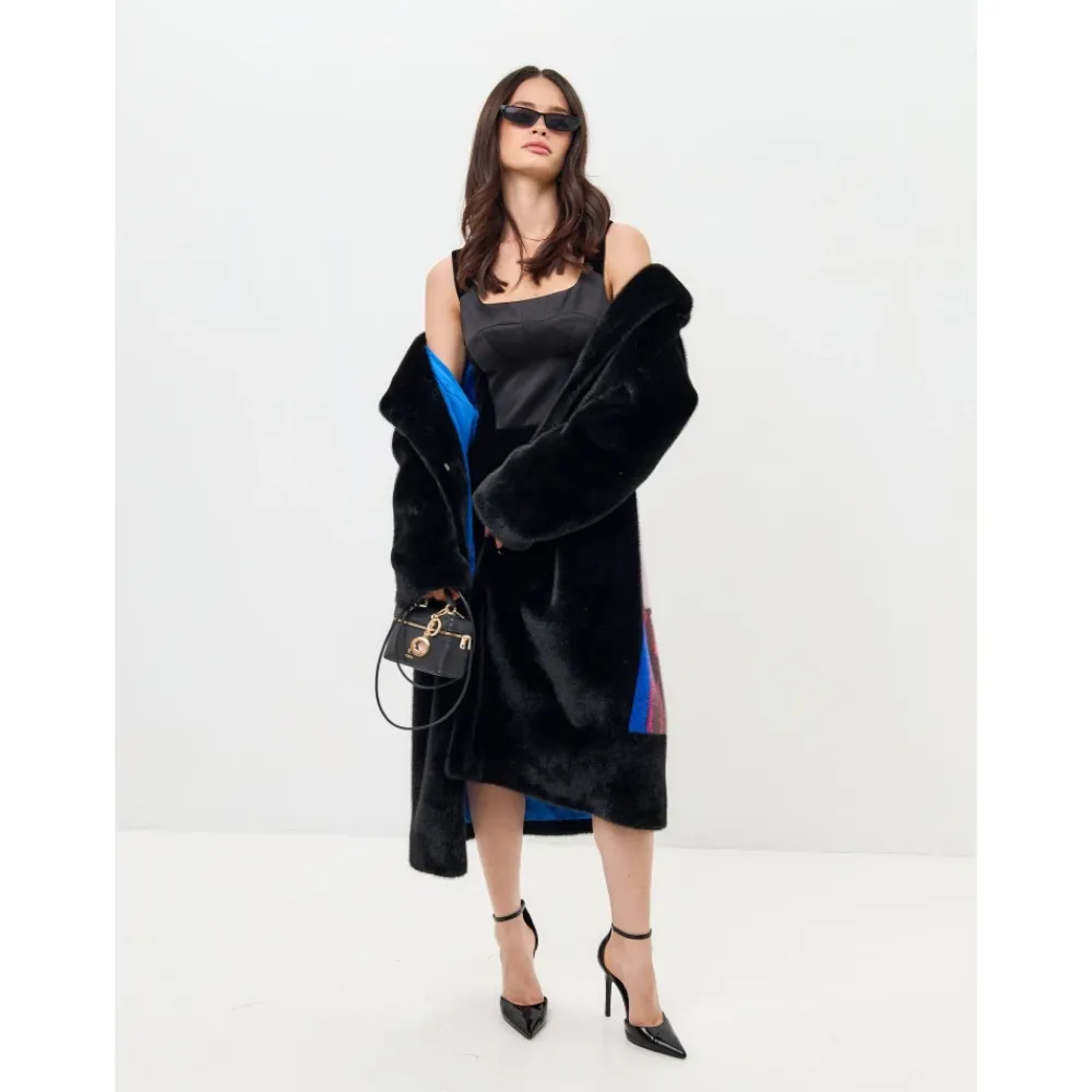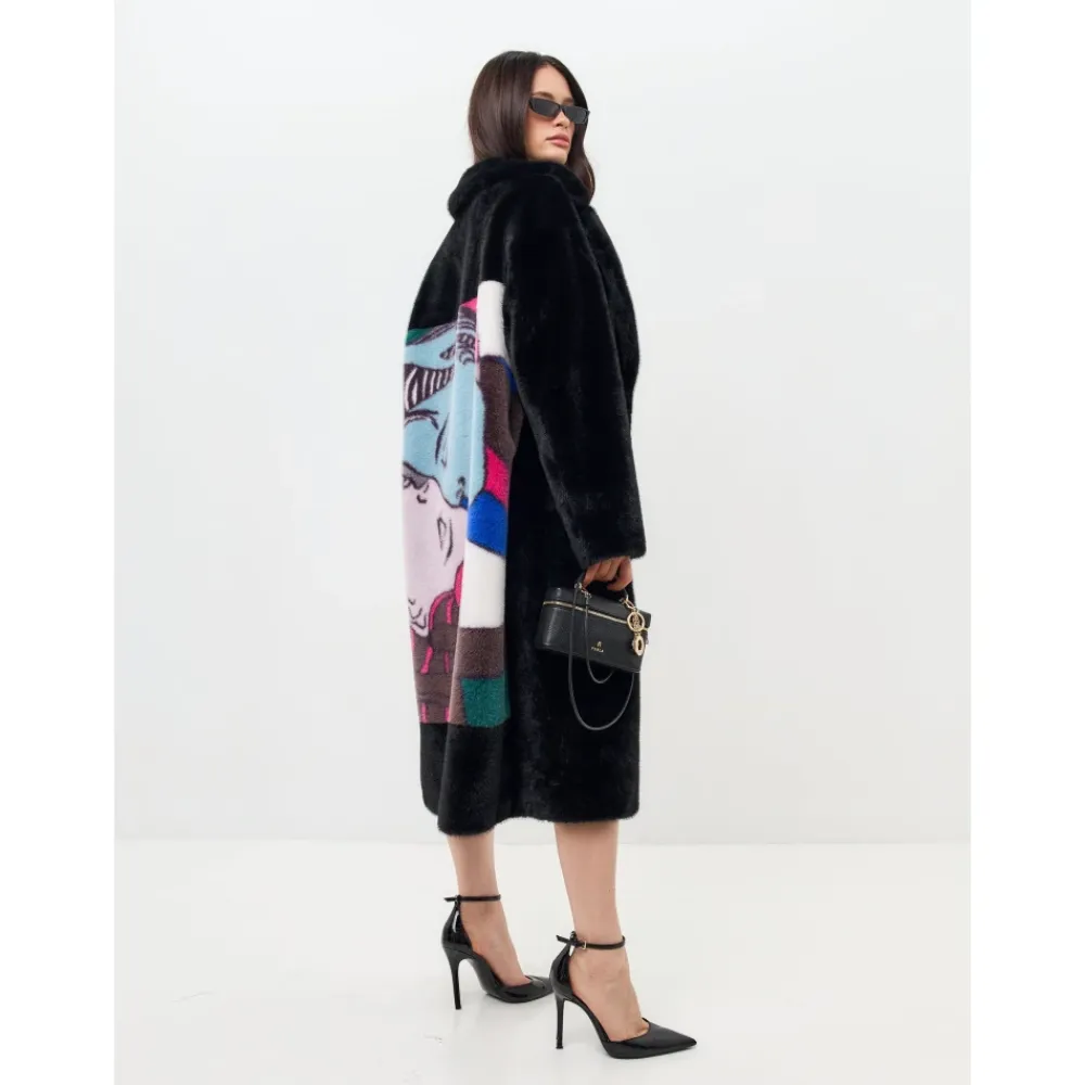 Skil dig ud med stil med Deluxe Lang Rygprint Frakke Lovers fra Cesare Gaspari. Denne frakke kombinerer materialer af høj kvalitet med et unikt rygprint design, der sikrer varme og et markant look. Produkt detaljer: Sort | 43% Modakryl | 36% Polyester | 21% Akryl | Reverskrave | Rygprint | Længde til læggen | Hægtelukning | Dimensioner og pasform: Modellen er iført størrelse S | Sammensætning og pleje: 43% Modakryl | 36% Polyester | 21% Akryl