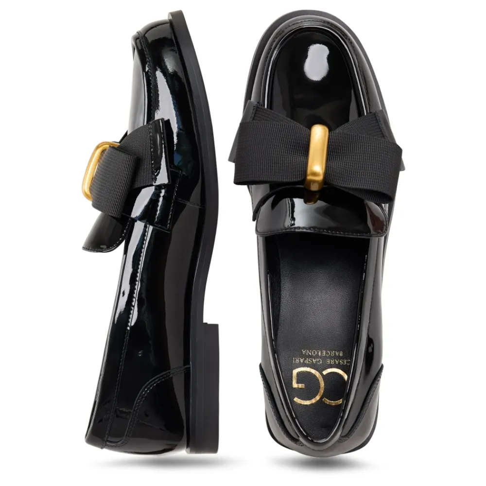 Cesare Gaspari Loafers*Elegant loafers med guld sløjfe Dorothy – Patent Sort