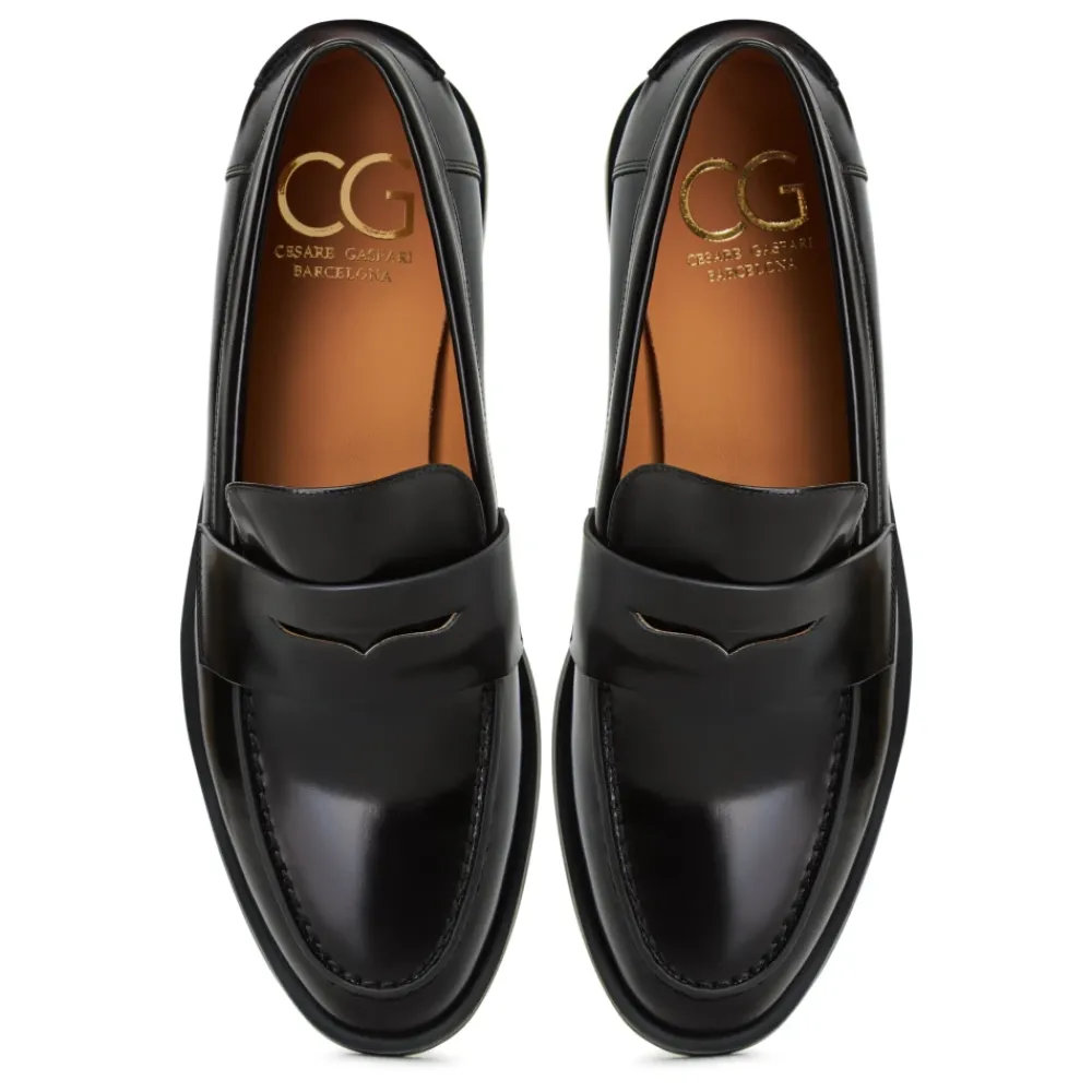 Cesare Gaspari Loafers*Læder Loafers med Blokhæl – Patent Sort