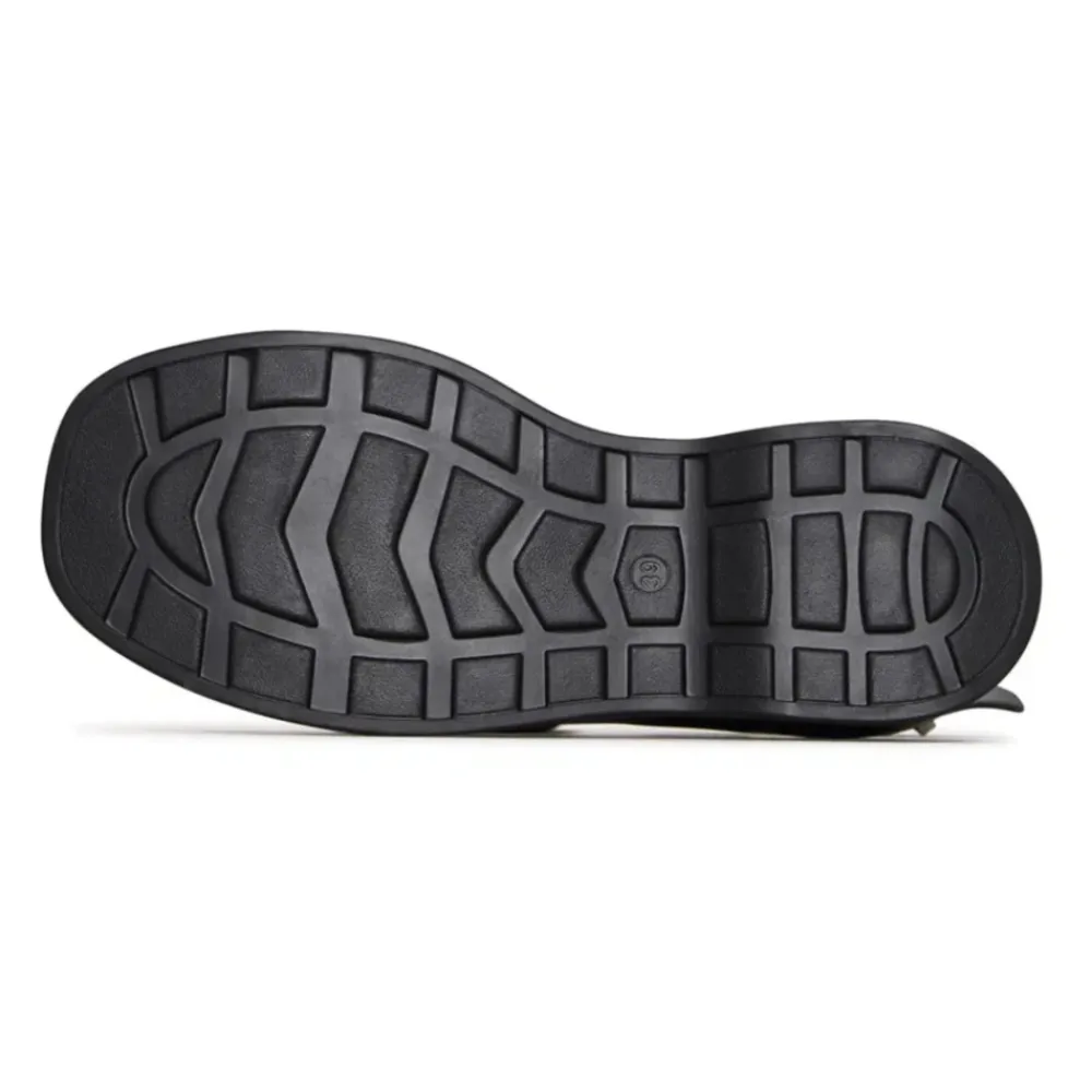 En dristig blanding af stil og komfort, disse ruskind krydsremssandaler tilbyder et moderne twist på varmt vejr fodtøj. Det bløde ruskindsoverdel har brede, krydsende remme, der giver en sikker men afslappet pasform, mens den justerbare ankelrem tilføjer støtte. Afsluttet med en markant platformssål med leopardtryk, tilføjer disse sandaler en chic kant til ethvert outfit. Materiale: Premium ruskind For: Blødt læderforing Polstringstype: Let polstret indersål Skospids: Åben tå Lukning: Justerbar spænde rem Sål: Solid platformssål med leopardtryk Hæltype: Flad platform Detaljer: Brede krydsende remme, sikker ankel lukning og en dristig mønstret sål