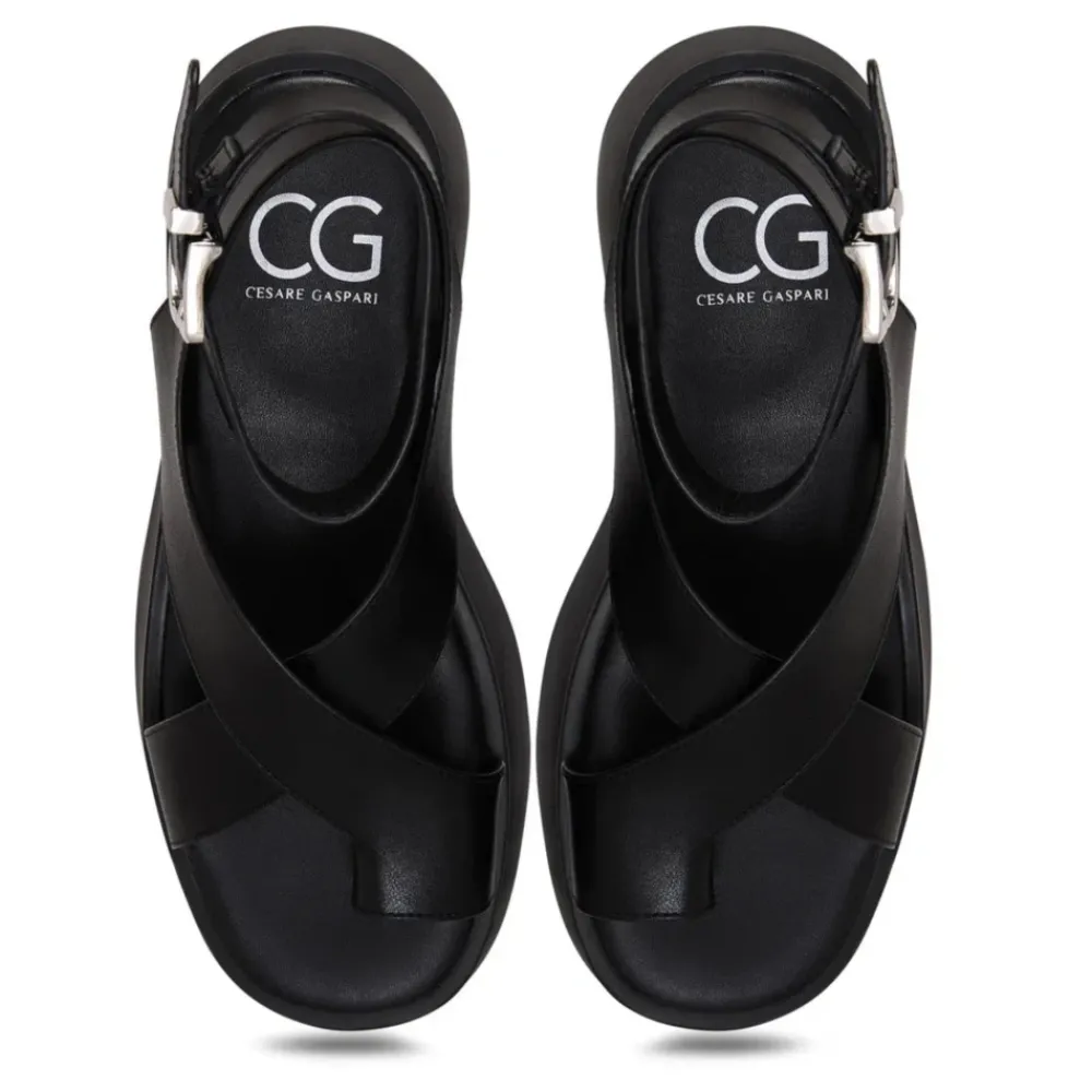 Cesare Gaspari Sandaler*Suede Cross-Strap Sandals – Black Sort