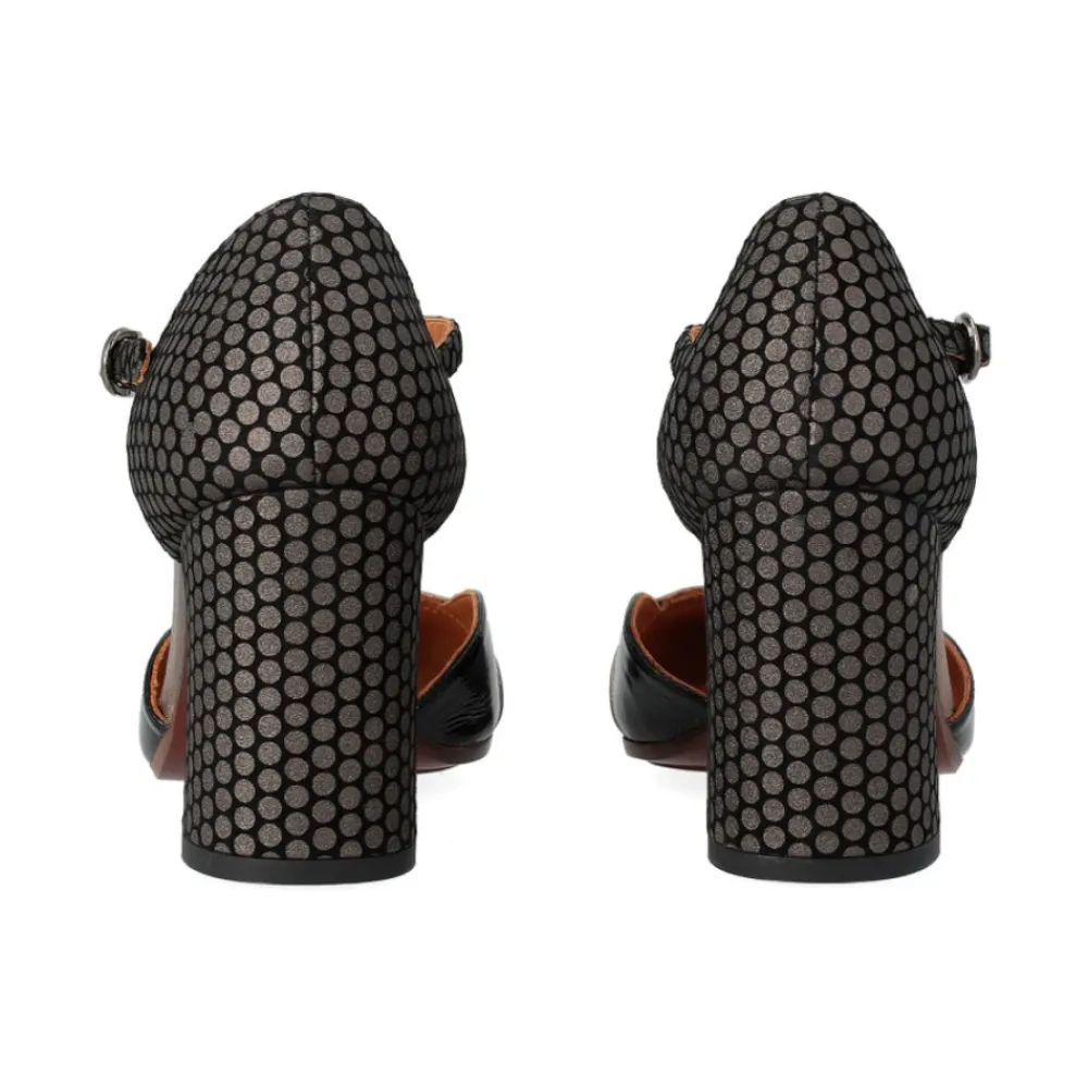 Forhøj din stil med disse Chie Mihara hæle. Lavet af sort ruskind med farverigt tryk, med beige, brun og kobber læderindsatser. Disse pumps er designet med en spænde lukning, læderbeklædt hæl og ruskind, lædersål med skridsikre gummierede indsatser. Foret med læder for komfort.