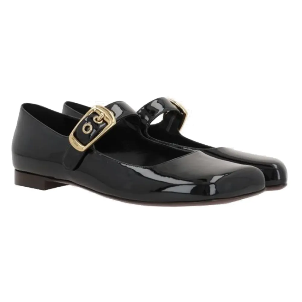 Chloé Polly Mary-Jane Ballerina Sko kombinerer en finish i patent kalveskind med et overdimensioneret guldspænde for et raffineret, moderne bud på den klassiske ballerina. Den asymmetriske firkantede tå og lave profil gør dem velegnede til polerede hverdagslooks og pænere outfits. Nøgleattributter: Sort | Kalveskind | Mary-Jane rem med spænde | Patent finish | Asymmetrisk firkantet tå | Overdimensioneret guldspænde | Mary-Jane rem | Lav stablet hæl | Dimensioner & pasform: Normal i størrelsen | Sammensætning & pleje: 100% kalveskind