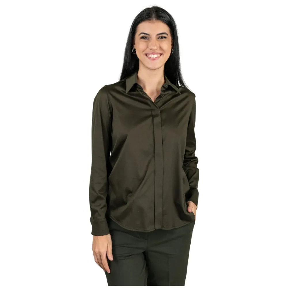 Circolo 1901 Jersey Skjorte kombinerer førsteklasses skotsk garnjersey med et stilrent design med knaplukning for alsidig smart-casual påklædning. Vigtigste egenskaber: Grøn | Verdone | Jersey | Syv skjulte knapper | Knapmanchetter | Knaplukning | Jersey strikket tekstur | Skjorte silhuet | Mål & pasform: Længde 69,5 cm (IT størrelse M) | Sammensætning & pleje: 100% bomuld | Maskinvask.