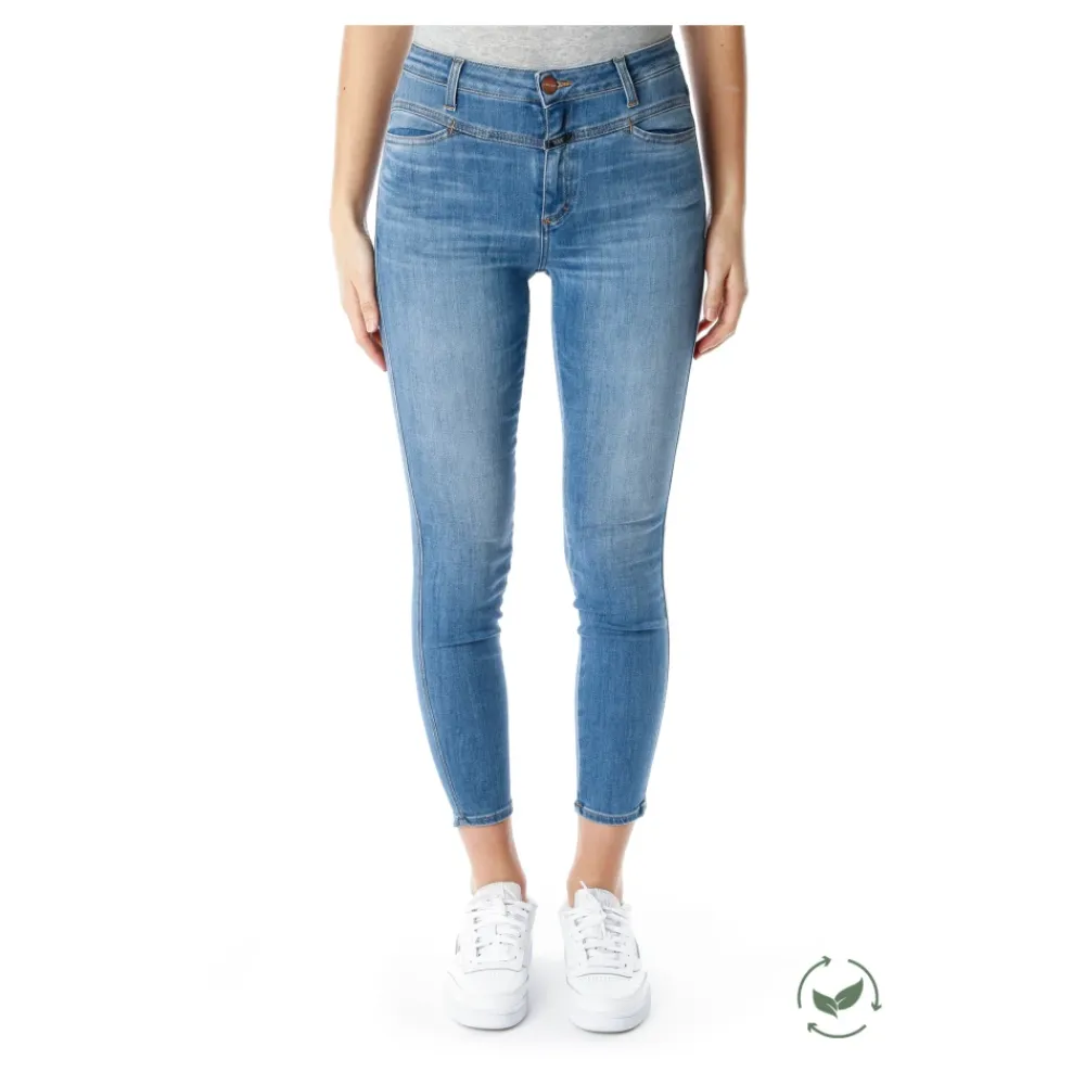Closed Skinny Jeans i powerstretch denim med høj talje og meget høj elasticitet. Den mellemblå vintagevask og den rene flyvedetalje gør dem til en alsidig ankelkort basisvare. Vigtigste egenskaber: Blå | Mellemblå | Powerstretch denim | Meget høj elasticitet | 10-oz denim | Knap- og lynlåsgylp | Flylabel | Høj talje | Mellemblå vintagevask | Mål og pasform: Skinny fit | Høj talje | One-length; ender ideelt ved anklen | Modelhøjde 1,75 m, iført størrelse 26