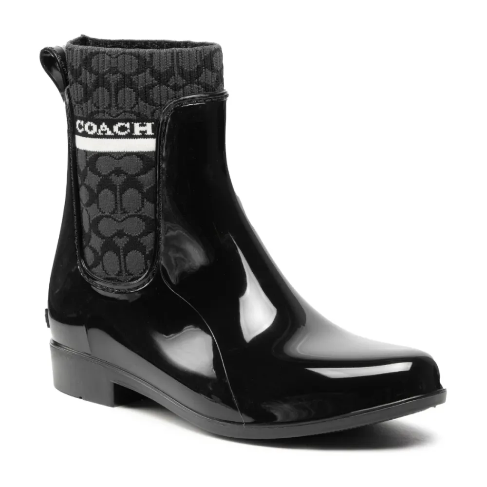 Opgrader din regnvejrsstil med Coach Rivington Wellington gummistøvler i klassisk sort. Disse støvler er fremstillet i Vietnam og har en slidstærk gummisål og det ikoniske Coach-logo, hvilket gør dem til et stilfuldt valg til enhver garderobe. Produkt detaljer: Sort | Gummi | Vandafvisende | Chelsea boot stil | Ikonisk Coach logo |