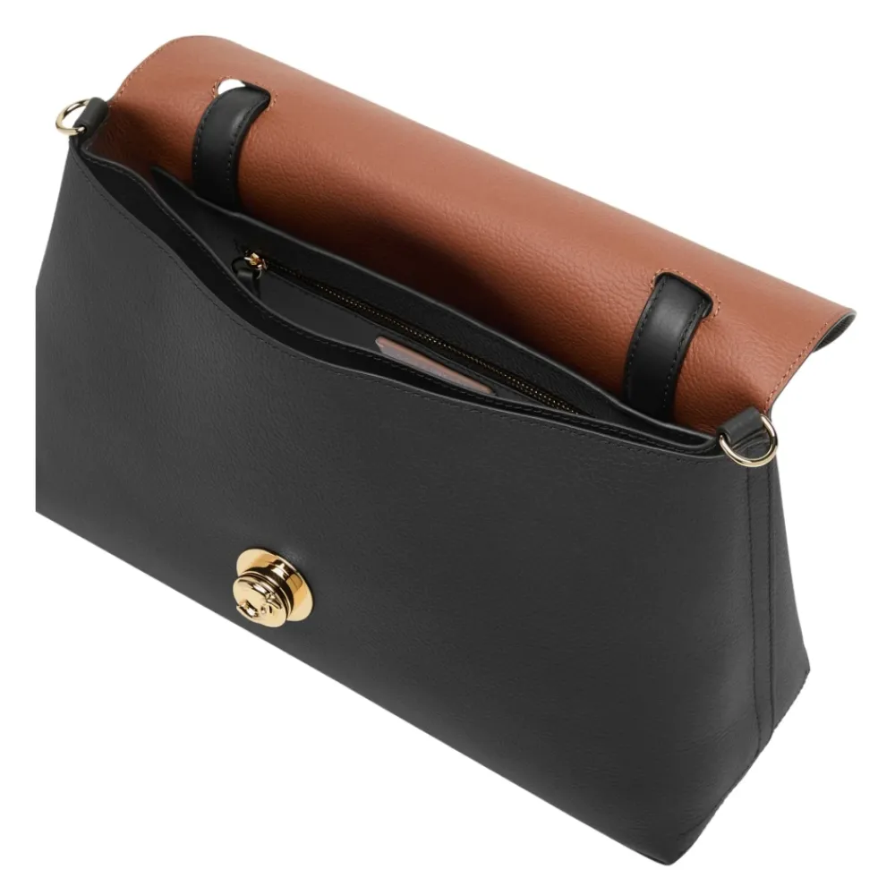 Coccinelle Nikla skuldertaske kombinerer en raffineret silhuet med klapfront med brandets C‑Me drejelås, og tilbyder en blød, dobbeltsidet læderkonstruktion designet til hverdagsbrug og organiseret opbevaring. Vigtige egenskaber: Sort | Cognac | Kalveskind | Blød, tumbled finish | Holdbar til hverdagsbrug | Drejelukning med C‑Me logo | Rummeligt interiør | Baglomme | Indvendig lynlåslomme | Indvendig opdeling | Justerbar og aftagelig skulderrem i læder | Toplæderhåndtag | Dobbelt læderkonstruktion | Silhuet med klapfront | C‑Me drejelås detalje | Moderne, raffinerede linjer | Guldbogstaver logo | Let guldbelagt hardware | Sammensætning og pleje: 100% kalveskind | Undgå aggressive rengøringsmidler eller desinficerende geler; tør af med en blød klud og opbevar i en støvpose.