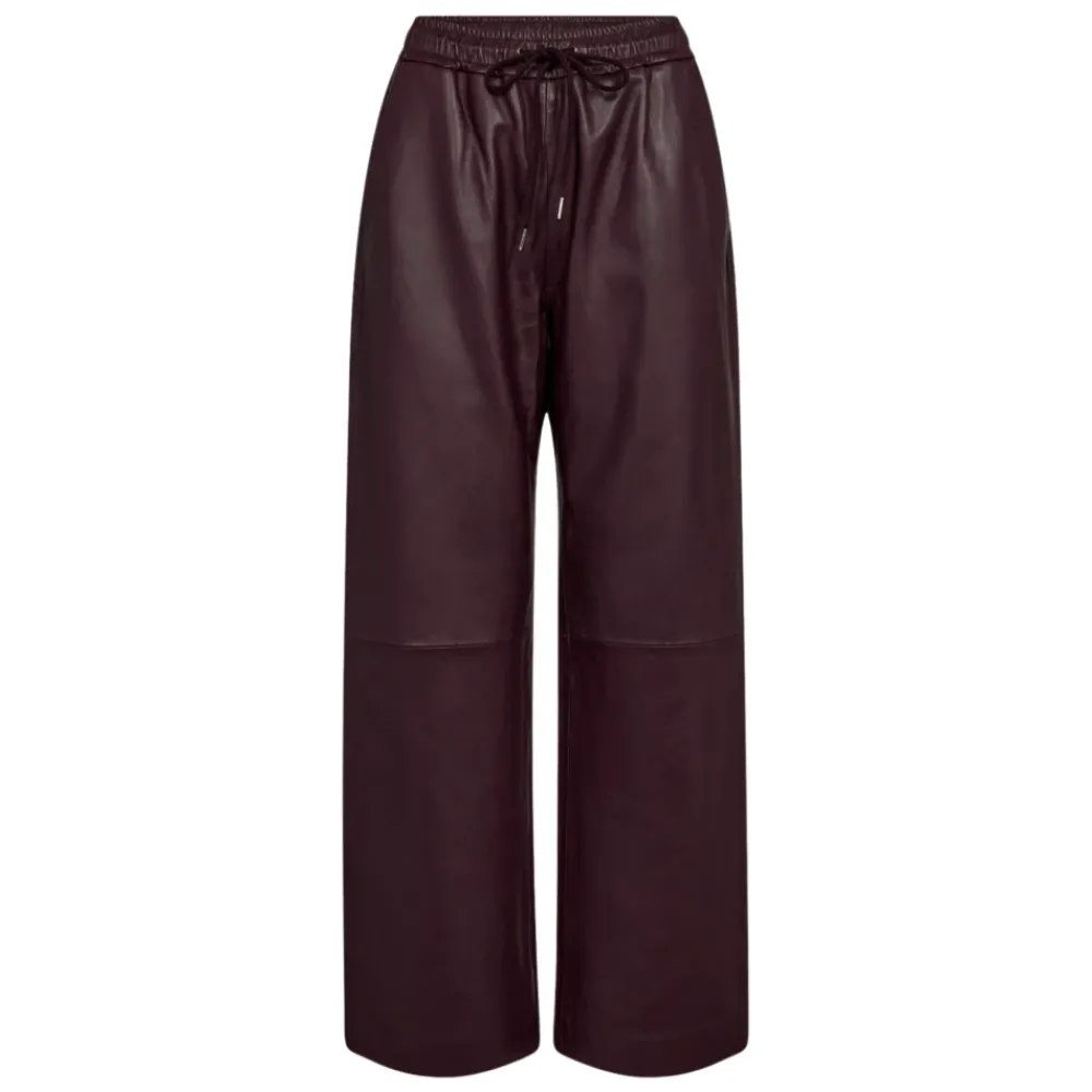 Co’Couture Phoebecc Bukser kombinerer bredbenet læderstyling med en pull-on talje for komfortabel, elegant hverdagsbrug. Designet giver en minimalistisk finish, der fungerer til både afslappede og mere formelle looks. Vigtige egenskaber: Rød | Bordeaux | Læder | Elastisk linning | Pull-on stil | Snørelukning | Bredt ben | Lang længde | Glat læderfinish | Minimalistisk design | Dimensioner og pasform: Bred benpasform | Sammensætning og pleje: 100% Læder