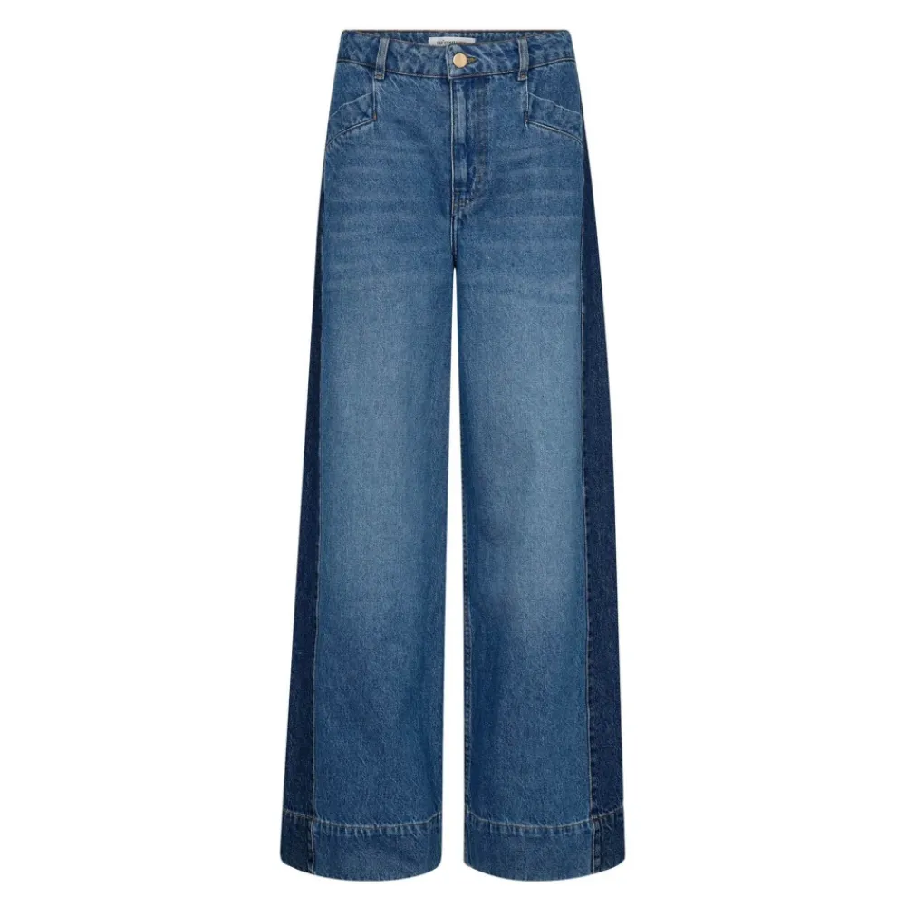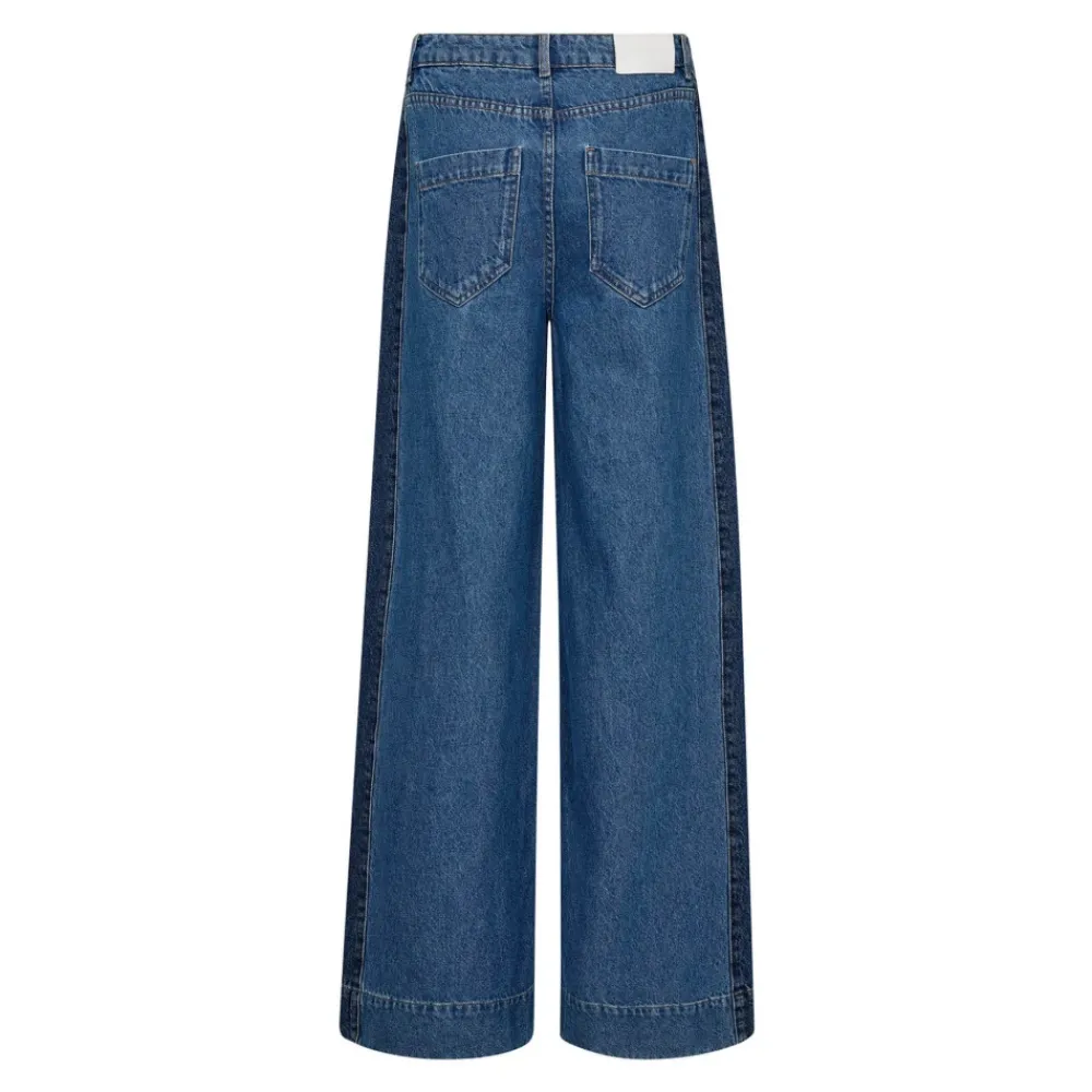 Co’Couture Wide Jeans er en denimmodel med brede ben, designet til afslappet hverdagsbrug, og tilbyder en rummelig silhuet, der passer til både casual og smart-casual looks. Nøgleattributter: Blå | Denimblå | Bred silhuet | Dimensioner & pasform: Bred pasform