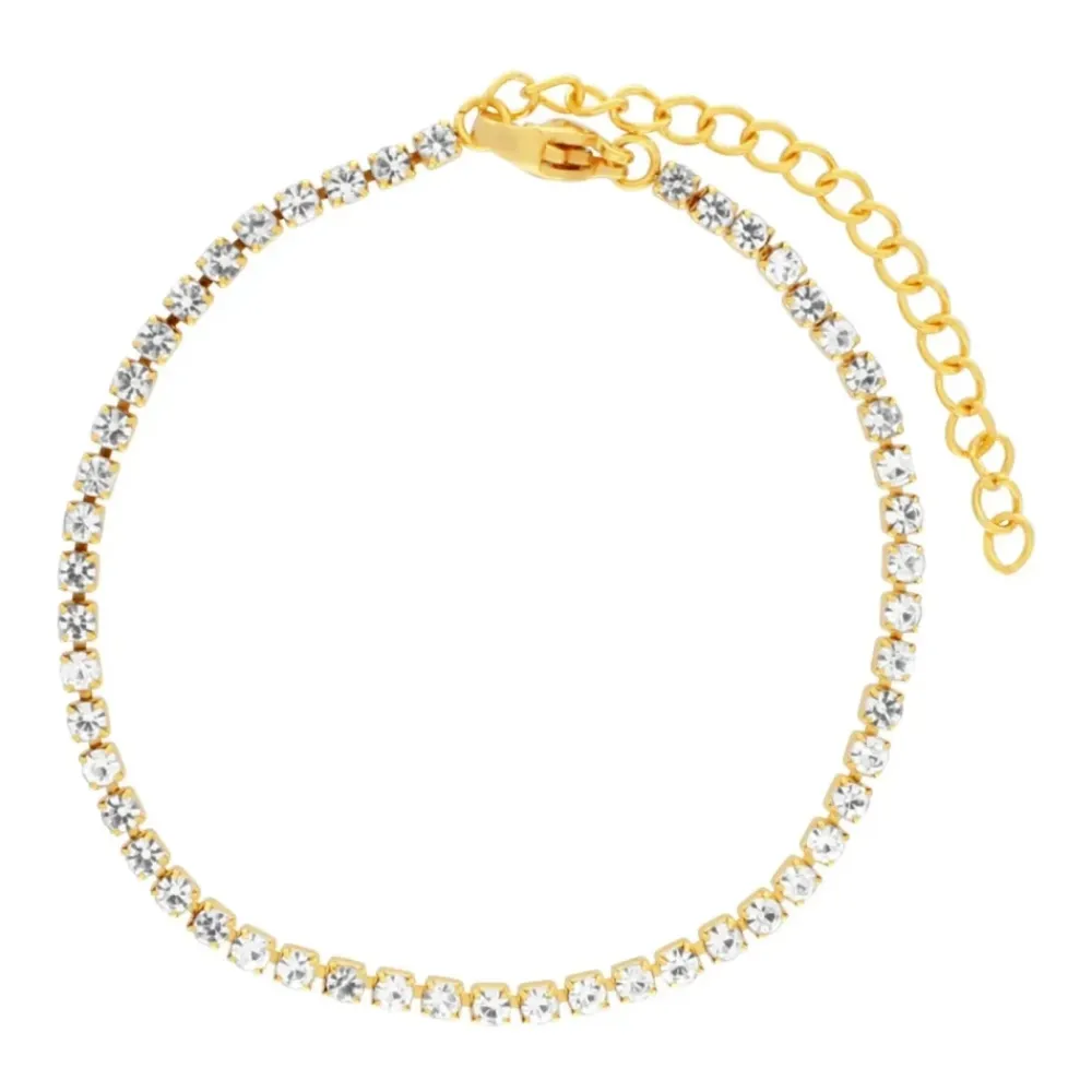Gør dig klar til at tilføje lidt glans og glans til din håndled med vores Joy Waterproof CZ Crystal 3MM Chain Bracelet fra Dansk Copenhagen. Denne tidløse tennisarmbånd har 18K forgyldning og er perfekt til at lægge lag på lag med dine yndlingsarmbånd. Garanteret til at få dig til at føle dig som en sand mester!